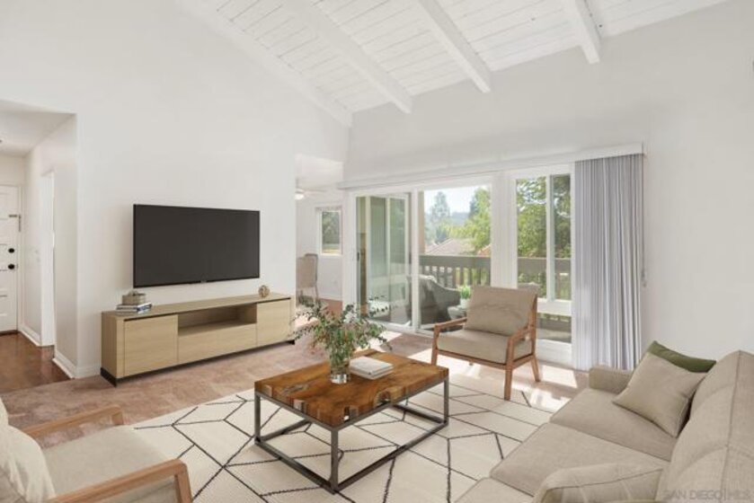 Range Price $525,000 – $570,000. PRIME LOCATION facing the inner complex features elevated mountain & tree views w/ easy access to the pool & barbecue gazebo. Freshly painted interior is spacious w/ vaulted beamed ceilings. Upgraded windows/slider & ceiling fan/light fixtures w/ cool breezes add comfort. Gated community is park-like w/ greens, pools, spa, gym, ponds, doggy friendly stations & playground. Water, trash & evening security guard included! Easy commute. VA Approved complex. PUSD. See links. Soak in AMAZING VIEWS from the dining area & balcony of mountains, trees & the green park-like community. Best location on the quiet side of the complex with no one above offers peace & serenity. Freshly painted kitchen w/ granite counters, stainless appliances & sink-top reverse osmosis water filtration dispenser. Several cupboards offer abundant storage. Rich laminate flooring in kitchen & dining. Upgraded baseboards. The primary bedroom is ensuite w/ an expansive closet.>Additional Improvements: Upgraded 2nd bathroom tub/shower enclosure w/ inset shelf, microwave, dishwasher, garbage disposal & washer/dryer. Clean & Move in ready! Wonderful home for 1st time buyers or investment. The central Rancho Bernardo location is close to shopping, restaurants & the hiking/biking trails of Lake Hodges. Easy commute to beaches, downtown or local mountains. Highly acclaimed Poway Unified Schools.>Ask about approval for Westwood Club Membership, 13-acre recreational facility across the street.<