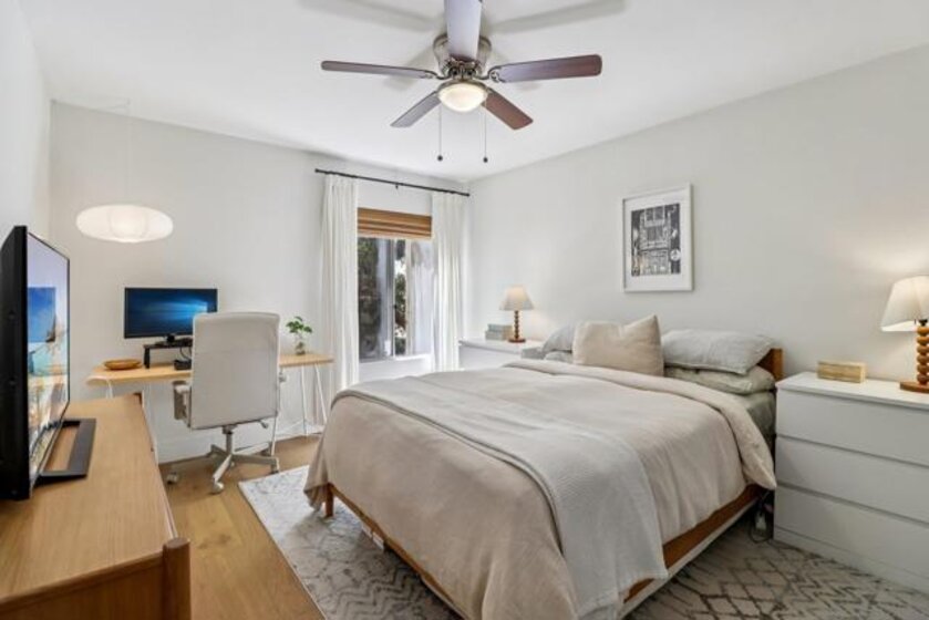 Fully remodeled 1-bedroom, 1-bath corner unit located in The Plaza at Pacific Beach. This bright and updated home features brand-new finishes throughout, including new carpet and hard-surface flooring, modern stone countertops, sleek cabinetry, stainless steel appliances, and a beautifully renovated bathroom with a new shower and vanity. Residents enjoy resort-style HOA amenities, including four pools and spas, seven tennis courts, a full-size gym, sauna, on-site management, and 24-hour security—all within a fully gated community. Outdoor barbecues provide the perfect space for relaxing or entertaining. Ideally situated just about a mile from Crown Point and Diamond Street beaches, and within walking distance to local shops and dining, this home offers the perfect blend of comfort, convenience, and coastal living.