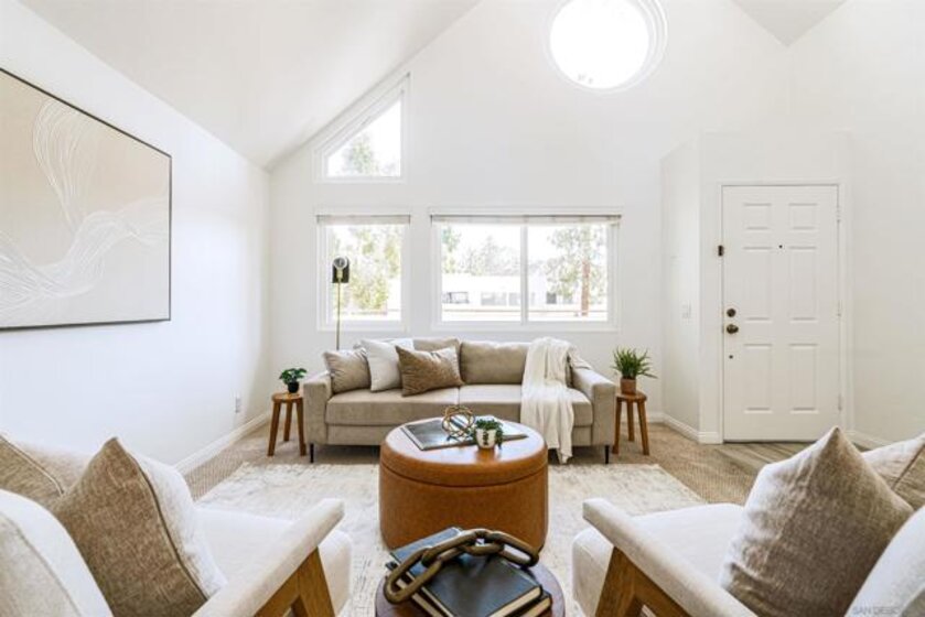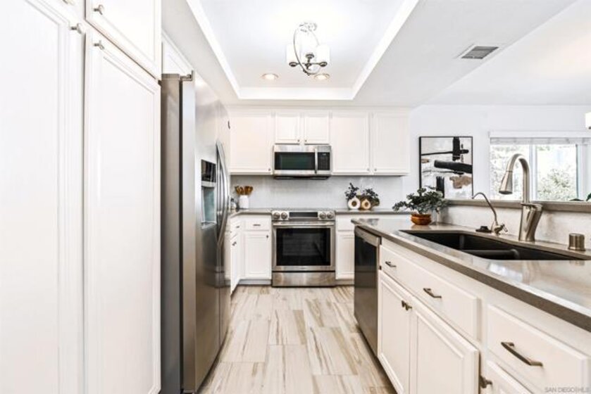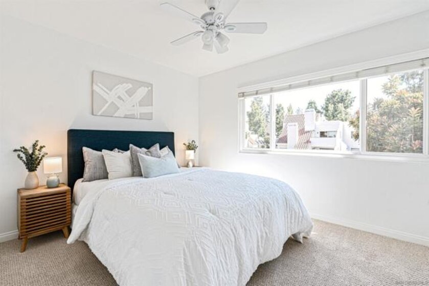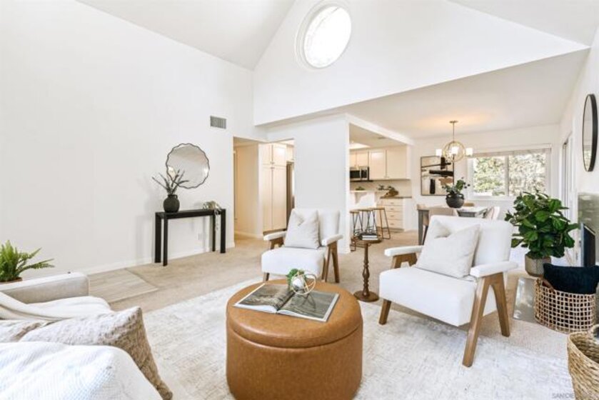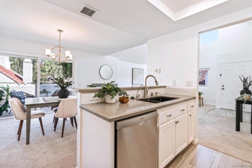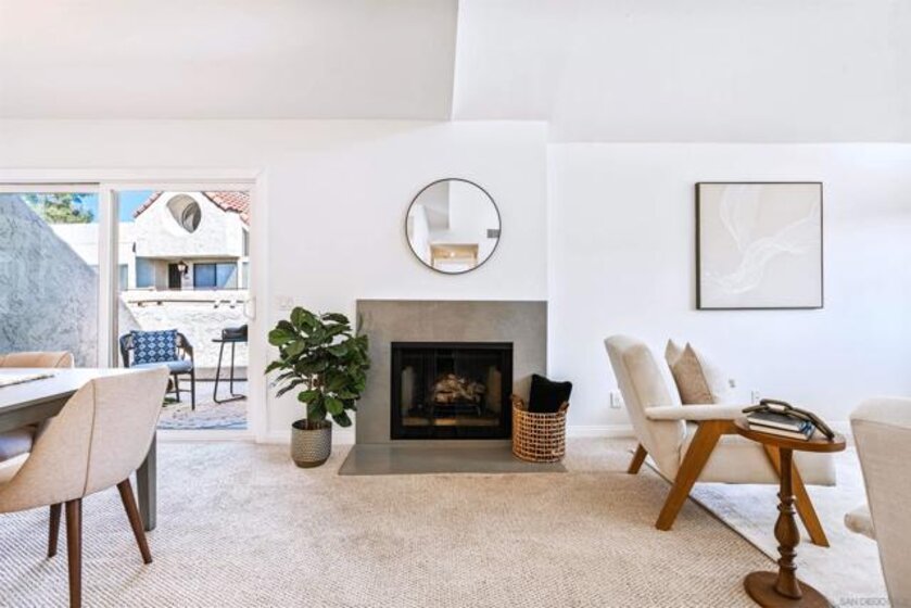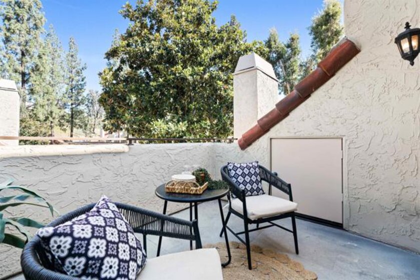 2 bedroom 2 bathroom top unit condo in Bernardo Pines! Bright and airy with an open layout that is perfect for entertaining guests or relaxing next to the fireplace. A private balcony off of the dining room and kitchen where you can let the breeze come through. Convenient in-unit laundry with built-in shelving for extra storage or folding space. A generous sized closet in the primary suite. Two assigned parking spaces. When you are not staying home you will enjoy all of the resort style amenities that Bernardo Pines offers which includes a pool, spa, clubhouse, and tennis courts. Located within Poway School District and close to shopping, dining, and easy freeway access to beaches, hiking trails and more