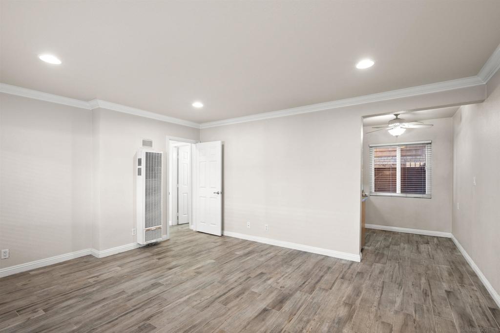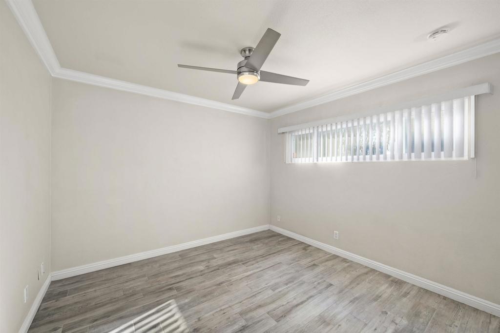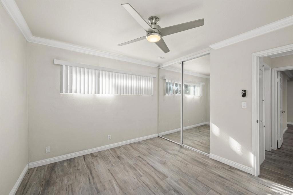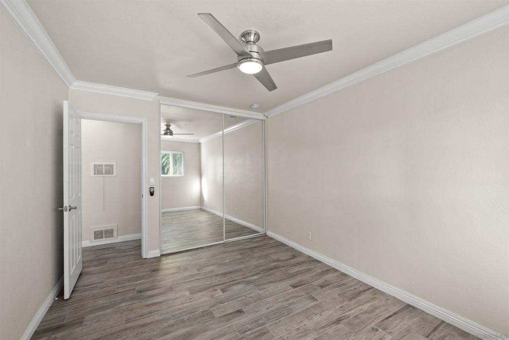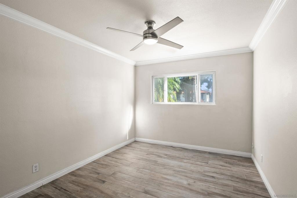 Gorgeous 2-bedroom, 1-bath ground-level end-unit condo in the heart of Pacific Beach — perfect as a primary residence, beach retreat, or income-producing investment. Bright and airy with windows on three sides, this light-filled home offers privacy, natural cross-breezes, and that effortless coastal feel. Move-in ready and meticulously maintained, the interior features beautiful porcelain tile-plank flooring, granite kitchen countertops, a newer dishwasher, recessed lighting, crown molding, pine wood baseboards, and newer dual-pane vinyl windows. The bathroom adds a fresh, modern touch, while the hardwood front door with keyless entry provides both style and convenience. Set within a charming 12-unit gated complex with lush tropical landscaping, this home offers a peaceful escape just moments from the energy of Pacific Beach. Walk three blocks to Trader Joe’s, stroll to Kate Sessions Park for sunset views, or bike to the beach for morning surf sessions. Enjoy easy access to PB’s vibrant shops, cafés, restaurants, and nightlife — all while returning home to your own quiet, secure retreat. Low HOA dues include water and trash. Convenient shared laundry facilities located on the property. One assigned parking space included. Experience the best of coastal living — where convenience, charm, and lifestyle come together.
