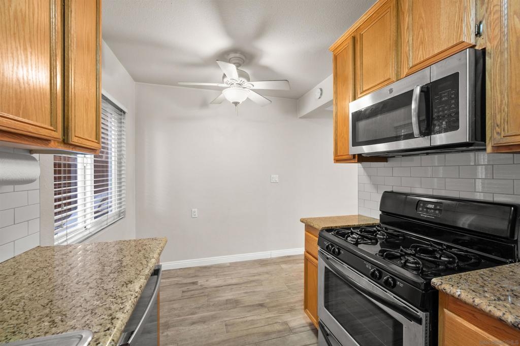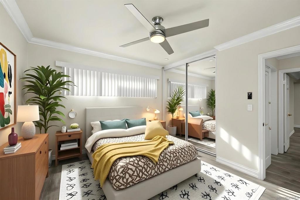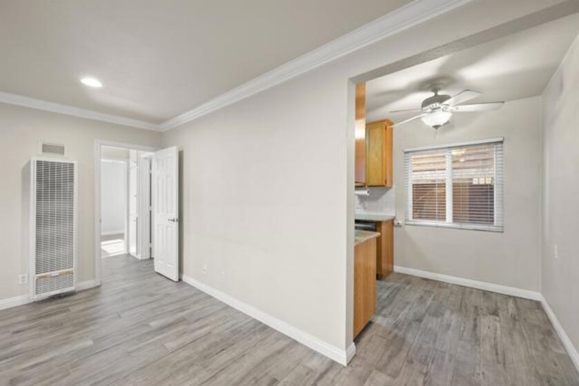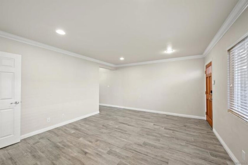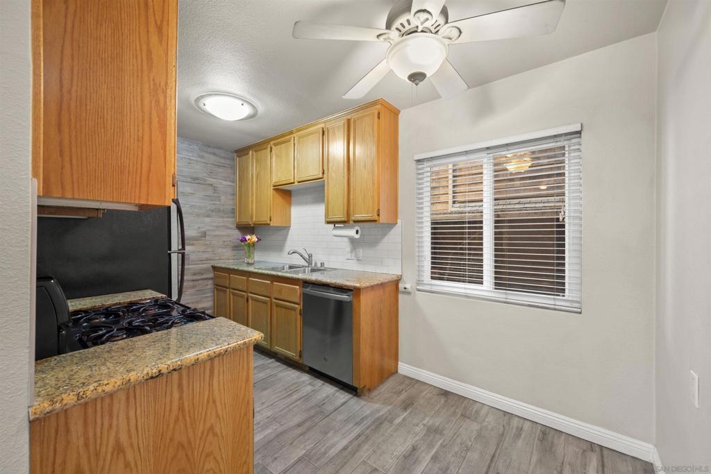 Gorgeous 2-bedroom, 1-bath ground-level end-unit condo in the heart of Pacific Beach — perfect as a primary residence, beach retreat, or income-producing investment. Bright and airy with windows on three sides, this light-filled home offers privacy, natural cross-breezes, and that effortless coastal feel. Move-in ready and meticulously maintained, the interior features beautiful porcelain tile-plank flooring, granite kitchen countertops, a newer dishwasher, recessed lighting, crown molding, pine wood baseboards, and newer dual-pane vinyl windows. The bathroom adds a fresh, modern touch, while the hardwood front door with keyless entry provides both style and convenience. Set within a charming 12-unit gated complex with lush tropical landscaping, this home offers a peaceful escape just moments from the energy of Pacific Beach. Walk three blocks to Trader Joe’s, stroll to Kate Sessions Park for sunset views, or bike to the beach for morning surf sessions. Enjoy easy access to PB’s vibrant shops, cafés, restaurants, and nightlife — all while returning home to your own quiet, secure retreat. Low HOA dues include water and trash. Convenient shared laundry facilities located on the property. One assigned parking space included. Experience the best of coastal living — where convenience, charm, and lifestyle come together.