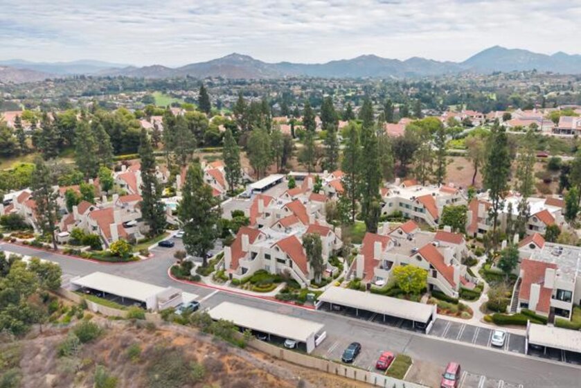 FHA & VA Approved Complex! Enjoy fantastic views of the mountains and Lake Hodges from this beautifully updated upstairs corner unit, filled with natural light and vaulted ceilings in the living room. This stylish home features brand-new white oak cabinetry, quartz countertops, and a fully refreshed bathroom for modern comfort. The spacious primary bedroom offers a huge walk-in closet plus an additional closet for plenty of storage. New dual-pane windows throughout, plush new carpeting, and a newer central HVAC system provide year-round comfort. A stacked washer and dryer are conveniently located in the hallway closet. Unit comes with one covered carport and one assigned open space just outside the unit, along with ample guest parking. Don’t miss this move-in-ready gem with serene views and quality upgrades!