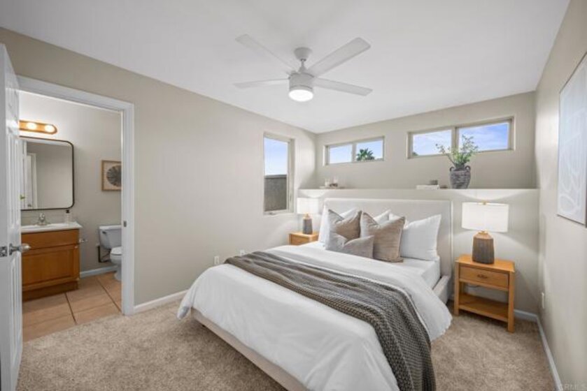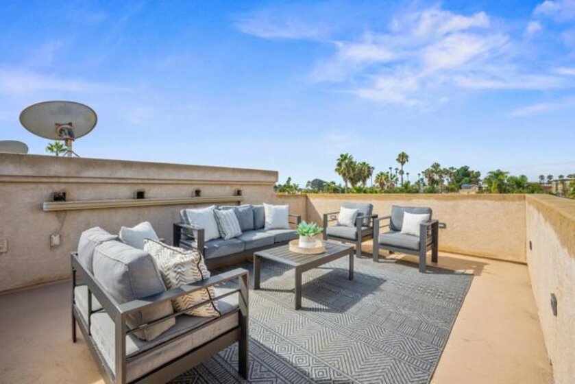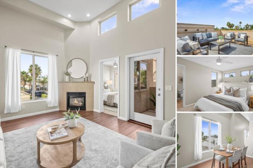 Just blocks from all the vibrant amenities Pacific Beach has to offer, this 3-bedroom, 2.5-bath condo is the ultimate beachside retreat. Perfectly positioned as a corner unit, you’re only steps from Garnet Ave, a few blocks to Mission Bay, and about a mile from the beach, shops, and restaurants. Enter through your private entryway to find a convenient downstairs bedroom with a full bath, plus a stacked washer and dryer in the hallway. The main level offers an open layout with a kitchen, dining area, powder bath, living room, and an additional bedroom that can also serve as a home office. The main living area offers an open layout with lots of windows and the patio door which is perfect to take in those coastal breezes. Going upstairs, the private primary suite features a full bathroom. Heading back downstairs off the living room, the private patio leads to a spacious rooftop deck—ideal for sunsets, fireworks, or entertaining guests. Adding to its appeal, this home comes with an attached one-car garage plus a dedicated parking space right next to the entrance. With only four units in the well-maintained HOA, this property combines comfort, convenience, and the best of beach living.