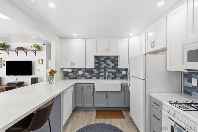 Welcome to this bright, sun-filled Pacific Beach retreat! This beautifully remodeled ground-level condo is packed with rare coastal amenities. Enjoy an expansive private gated yard perfect for entertaining, relaxing, and soaking in your hot tub. Inside, modern upgrades shine with recessed lighting, double-pane windows, mini-split heat & A/C systems, and a tankless water heater. You’ll love the added convenience of a private garage with laundry, two additional off-street parking spots, and a storage shed for surfboards, bikes, and beach gear, making this home a true North PB standout. Enjoy a neighborhood feel, yet just steps to shopping, restaurants, the Bay, and the Beach, this turn-key gem delivers the best of coastal living. Move right in and enjoy the PB lifestyle!