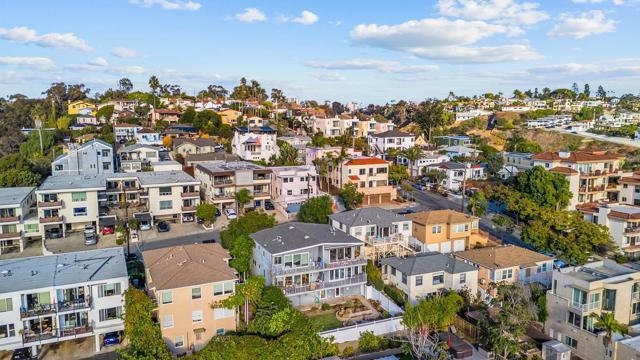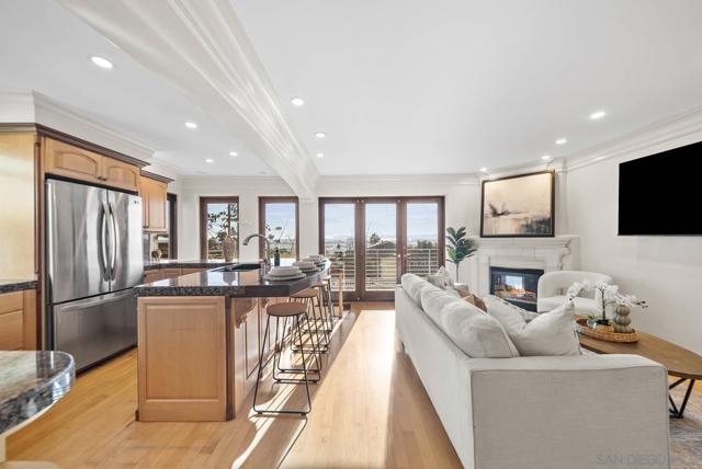 Experience sweeping views of the San Diego Bay from your kitchen, living room and balcony in this beautifully upgraded two-story condo in Mission Hills. The main level features an inviting living area with a fireplace and folding wood doors that open completely to the large balcony, creating seamless indoor-outdoor flow. The chef-inspired kitchen includes a Wolf range, pot filler, commercial-grade vent hood and ample counter space so that you can enjoy the views while cooking. The primary suite feels like a peaceful retreat, complete with an en-suite bathroom finished in travertine, a jetted soaking tub, and a separate walk-in shower. Downstairs, a versatile second bedroom offers comfort for guests, while an office nook, laundry area, and a second fireplace provide flexibility for work or relaxation. The community includes a shared grassy garden space surrounded by mature greenery, offering a quiet place to relax outdoors. Located just minutes from Little Italy, Old Town, downtown, the airport, and the 5 freeway, this home combines scenic hillside living with unbeatable convenience.