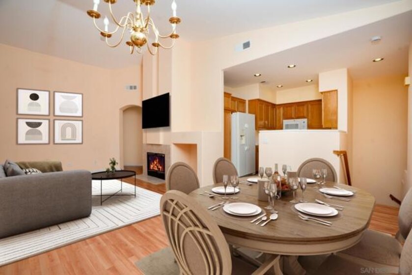 Don’t miss this exceptional opportunity to own a stylish townhouse in the resort-style community of Rancho Bernardo. This thoughtfully designed two-level residence features an attached one-car garage on the ground floor, complete with built-in cabinetry and a dedicated laundry area. The main living spaces are situated on the second level, offering a spacious and inviting layout. The open-concept living and dining area boasts soaring ceilings and an abundance of natural light, creating a warm and welcoming atmosphere. Upgrades include modern dual-pane windows and a sliding glass door, complemented by custom blinds throughout the home. Interior finishes include tiled flooring in the garage, natural stone and tile surfaces in the kitchen and bathrooms, and sleek laminate flooring in the living areas and bedrooms. This move-in-ready property is prepared to welcome its new owner. Don’t miss this exceptional opportunity to own a stylish townhouse in the resort-style community of Rancho Bernardo. This thoughtfully designed two-level residence features an attached one-car garage on the ground floor, complete with built-in cabinetry and a dedicated laundry area. The main living spaces are situated on the second level, offering a spacious and inviting layout. The open-concept living and dining area boasts soaring ceilings and an abundance of natural light, creating a warm and welcoming atmosphere. Recent upgrades include modern dual-pane windows and a sliding glass door, complemented by custom blinds throughout the home. Interior finishes include tiled flooring in the garage, natural stone surfaces in the kitchen and bathrooms, and sleek laminate flooring in the living areas and bedrooms. This move-in-ready property is prepared to welcome its new owner.