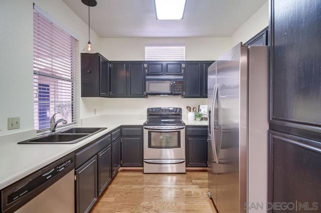 Great location, BRAND NEW HVAC, wood flooring plus a one car GARAGE! Move in ready in the gated community of Morada at Bernardo Vista Del Lago! This updated lower level unit features beautiful wood floors in the living and dining areas, a spacious bedroom with walk in closet and patio access, and a cozy living room with fireplace. The updated bathroom offers excellent storage space, and the interior includes a convenient stackable laundry area. BRAND NEW HVAC system ensures year round comfort. Enjoy resort style amenities including two pools, two spas, tennis and basketball courts, fitness center, clubhouse, billiard room, BBQs, and picnic areas. HOA covers water, trash, exterior maintenance, and gated security. Excellent commuter location within the award winning Poway Unified School District. Great location and move in ready in the gated community of Morada at Bernardo Vista Del Lago. This updated lower level unit features beautiful wood flooring in the living and dining areas, a spacious bedroom with walk in closet and patio access, and a cozy living room with fireplace. The updated bathroom offers excellent storage space, and the interior includes a convenient stackable laundry area. A private ONE CAR GARAGE provides parking and additional storage, and a BRAND NEW HVAC system ensures year round comfort. Enjoy resort style amenities including two pools, two spas, tennis and basketball courts, fitness center, clubhouse, billiard room, BBQs, and picnic areas. HOA covers water, trash, exterior maintenance, and gated security. Excellent commuter location within the award winning Poway Unified School District. Close to shopping and easy freeway access.