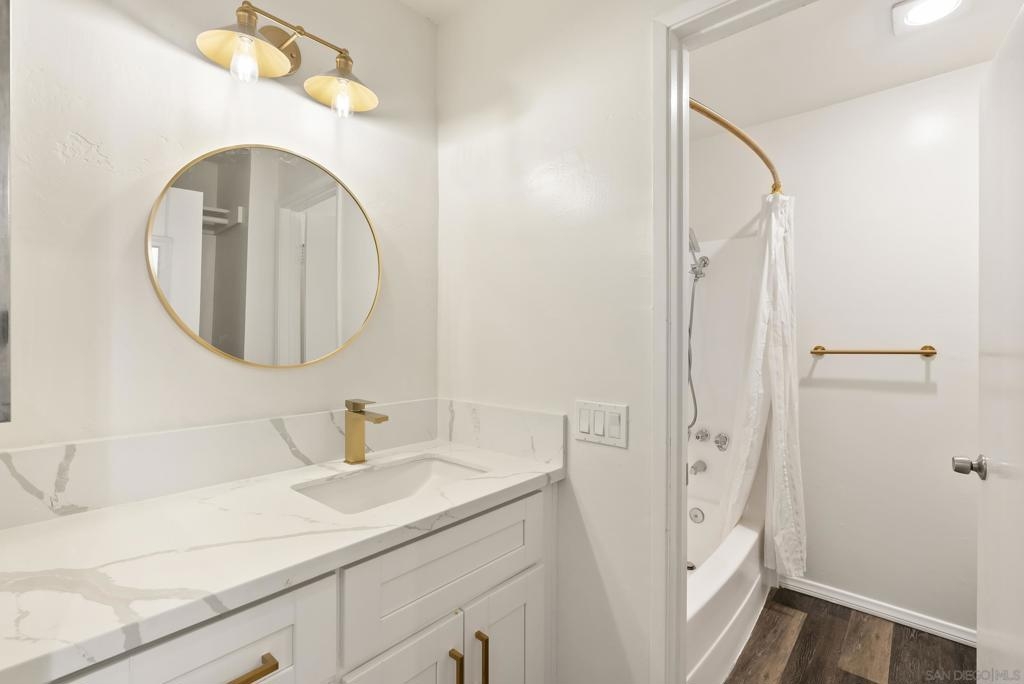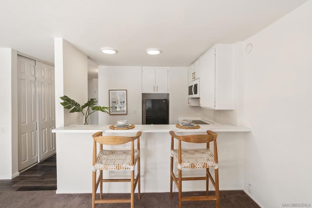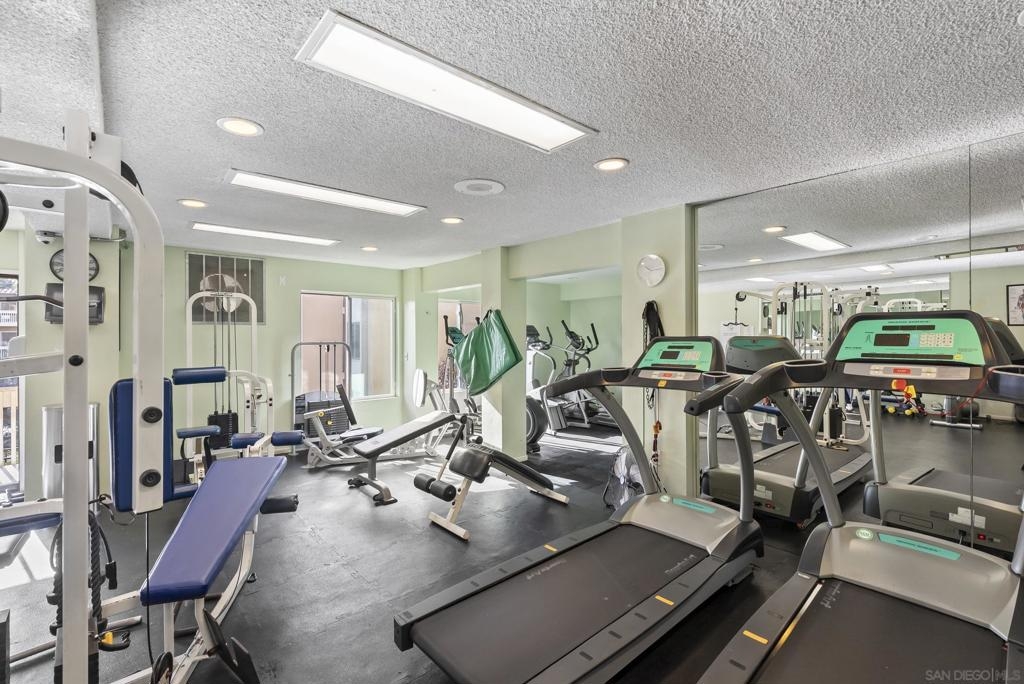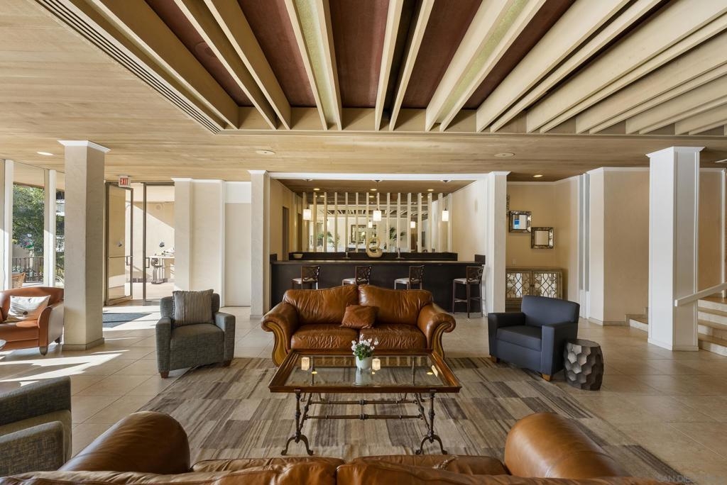 Welcome to resort-style living in the heart of Pacific Beach at The Plaza. This spacious second-floor STUDIO with 1 secure gated garage parking space (#137), offers an exceptional opportunity to enjoy the SoCal lifestyle at an affordable price point. Just minutes from the beach, dining, and everyday conveniences. Elevated above the courtyard, the unit features an oversized 8 ft X 5 ft private patio overlooking the peaceful pool and greenery, creating a perfect indoor-outdoor retreat. Recent upgrades include a new (see suppl) electric panel, updated bathroom w/ new vanity | lighting | quartz counters | refinished bathtub surround, and brushed gold light fixtures throughout, offering both comfort and an elevated style. Convenient community laundry right next door so no neighbor on one side and quiet interior location. Inside, the layout is impressively functional for a studio, with a large 6 ft X 9 ft entry area ideal for additional storage, a full-size kitchen w/ modern appliances, and a convenient eat-at bar that opens seamlessly to the living space. The living area provides ample space for flexible furniture arrangements, making it easy to create distinct living, sleeping, and work-from-home zones. The Plaza community is known for its unmatched amenities, including 5 tennis courts, 4 swimming pools, a well-equipped gym, sauna, BBQ areas, massive community room and extended outdoor deck overlooking the beautiful central water feature, billiard room, library, and lush landscaped grounds that feel like a year-round resort. Located just a 3-minute walk to shopping, restaurants, and nightlife along Garnet Avenue, and less than 2 miles from the beach, this home offers effortless access to everything Pacific Beach is known for. Walk, bike, or cruise to the sand while enjoying a low-maintenance lifestyle that doesn’t break the bank. A rare value in one of San Diego’s most desirable coastal communities.