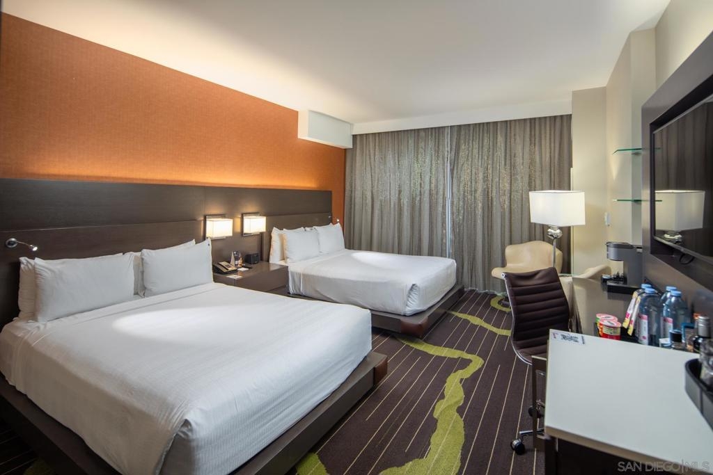 Are you ready to Rock?!! Experience the ultimate blend of luxury and lifestyle in this top-floor studio at the iconic Hard Rock Hotel in Downtown San Diego. Overlooking Petco Park and the vibrant cityscape, this sleek and spacious unit features two queen beds, a stylish sitting area, and a work desk — perfect for your city retreat. As part of a condo-hotel, owners can enjoy the space for up to 28 days per year while earning revenue through the hotel’s professionally managed rental program. Ownership comes with Rock Royalty status, unlocking exclusive perks like private concierge services, access to the Green Room Hospitality Lounge, complimentary valet parking during your stay, and invitations to VIP events. The Hard Rock Hotel boasts premier amenities including a rooftop pool with cabanas, buzzing bar and lounge, state-of-the-art fitness center, business hub, and on-site dining and shopping. Located just minutes from the airport and steps from Petco Park, the Gaslamp Quarter, the Rady Shell, and San Diego’s scenic waterfront, this is a unique opportunity to own a piece of the action — and enjoy the best of Downtown San Diego!