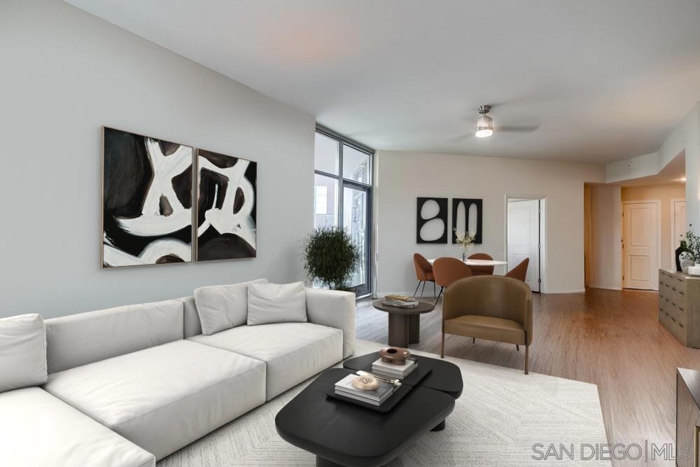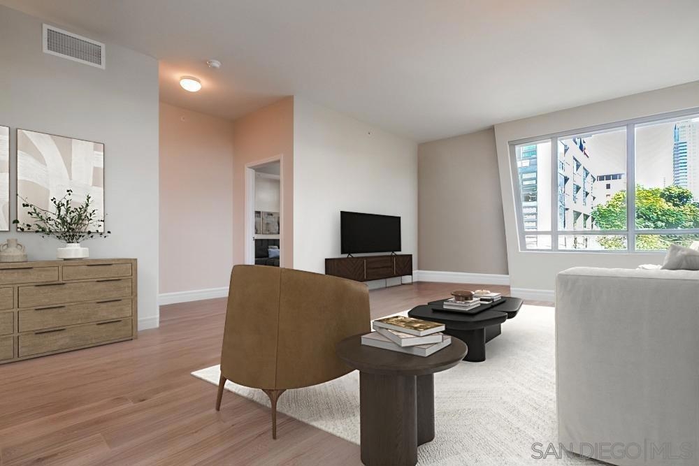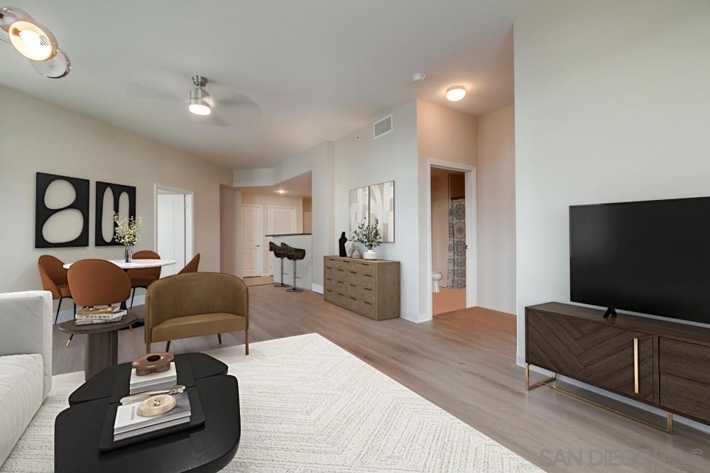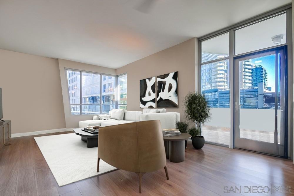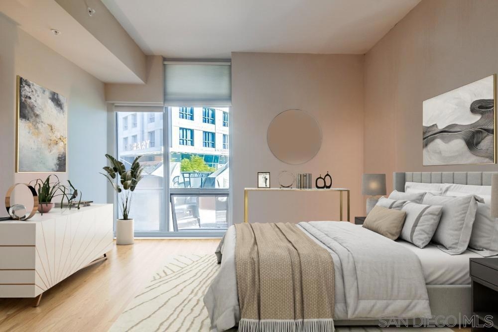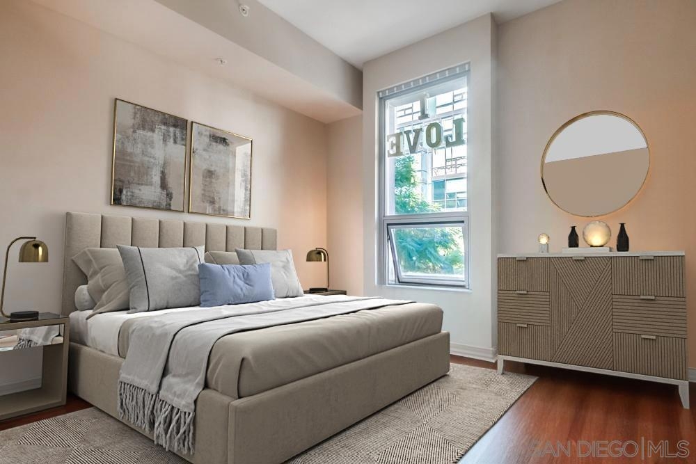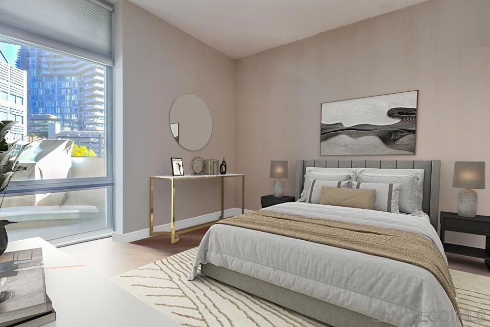 Experience the best of San Diego living in this very large 2 bedroom/2-bathroom home. The residence features luxury vinyl plank flooring, beautiful kitchen with granite counter tops and stainless-steel appliances including: dishwasher, refrigerator, microwave. Other condo amenities include: updated walk-in shower in primary bath, A/C, washer/dryer (inside unit), This North-East facing condo has large windows which allow plenty of natural sunlight. Two assigned parking spaces and a deeded storage unit are included. Complex features include 24 hour security, on-site management, exercise room, recreation room, terrace deck w/ BBQ & seating, gated community across the street from Petco Park & downtown library. Walking distance to all including, SD Bay, Embarcadero, Convention Center, walkways lined with trees for extra natural beauty. Experience the best of San Diego living in this very large 2 bedroom/2-bathroom home. The residence features luxury vinyl plank flooring, beautiful kitchen with granite counter tops and stainless-steel appliances including: dishwasher, refrigerator, microwave. Other condo amenities include: updated walk-in shower in primary bath, A/C, washer/dryer (inside unit), This North-East facing condo has large windows which allow plenty of natural sunlight. Two assigned parking spaces and a deeded storage unit are included. Complex features include 24 hour security, on-site management, exercise room, recreation room, terrace deck w/ BBQ & seating, gated community across the street from Petco Park & downtown library. Walking distance to all including, SD Bay, Embarcadero, Convention Center, walkways lined with trees for extra natural beauty.
