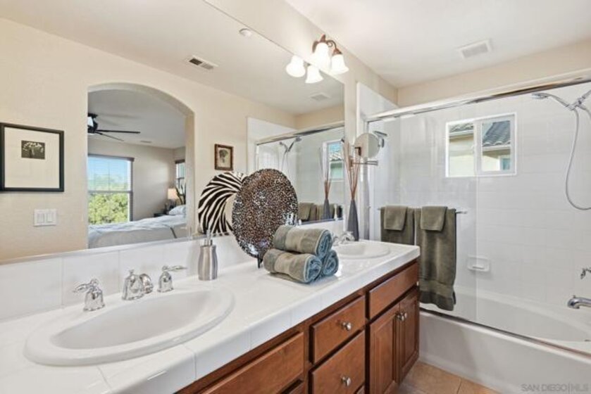 Located on Escala’s “Gold Coast”, high above a hillside of lush greenery and mature trees, this home offers an exceptional level of privacy, quality, design and views far and wide. From the moment you step inside, the home feels like a thoughtfully curated model: stylish, warm, and impeccably maintained. The original owners have taken great care in selecting bespoke window coverings, Bosch appliances, granite countertops, built-in speakers, and rich hickory engineered wood floors that span all three levels to create a timeless yet contemporary aesthetic. Every space feels intentional with 3 ensuite bedrooms, including one on the first floor which could double as an office, open floor plan for living and dining with kitchen island, an interior laundry room, powder room and an abundance of natural light throughout from the multitude of windows on three sides. Tucked away in a premier location, the home’s condition is pristine. This is a property where every finish has been cared for, every detail considered, and nothing left to chance. An attached 2 car garage adds convenience, while the overall layout offers a perfect balance of comfort, functionality, and elevated design. Set within one of Mission Valley’s most desirable gated communities, Escala is known for its resort-style amenities and unbeatable central location - near freeways, shopping, dining, downtown, beaches, and Snapdragon Stadium. This particular home stands apart for its privacy, polish, and pride of ownership. A rare opportunity to own a residence that truly feels better than new.