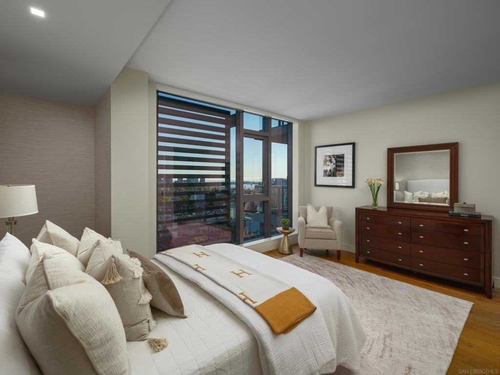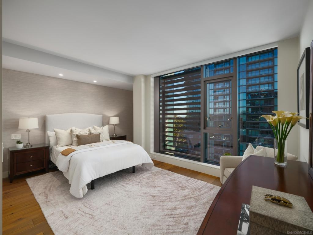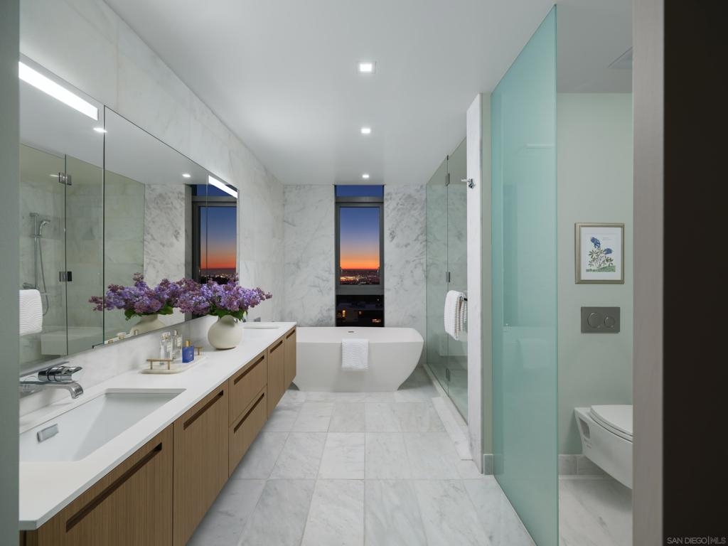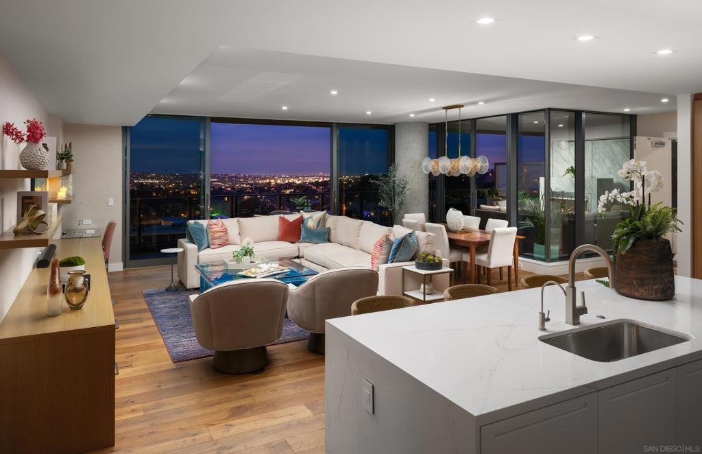 Welcome to a world of refined sophistication and effortless luxury at The Park, Bankers Hill—San Diego’s premier address for elevated living. This exceptional residence offers an unparalleled fusion of contemporary design, breathtaking panoramas, and world-class amenities, all set within one of the city’s most prestigious enclaves. Arrive in grandeur via your designated direct-access elevator, stepping into a luminous 2,675-square-foot sanctuary adorned with floor-to-ceiling glass walls, exquisite designer finishes, and an open-concept layout that seamlessly integrates indoor and outdoor living. This southwest corner residence is bathed in abundant natural light, seamlessly integrating the great room, dining area, and an expansive 661 square feet of private terraces—meticulously positioned to showcase breathtaking panoramas of the entire San Diego skyline, the Pacific Ocean, and the verdant beauty of Balboa Park. On the Fourth of July, indulge in the rare privilege of watching FIVE spectacular firework displays from the comfort of your own terrace, a true testament to this home’s extraordinary vantage point. A true chef’s sanctuary, the newly remodeled gourmet kitchen is a statement of both function and artistry, updated with top-of-the-line Wolf appliances, bespoke Italian Boffi cabinetry, and an oversized waterfall-edge island encased in Silestone quartz. Whether hosting an intimate gathering or a grand celebration, this impeccably designed space ensures every culinary experience is nothing short of exceptional. Retreat to the primary suite, a serene sanctuary of refined sophistication, where sweeping 270-degree panoramic views create a breathtaking backdrop of unparalleled beauty. Thoughtfully designed for the utmost comfort and refinement, this private haven features a spa-inspired en-suite bath adorned in lavish marble, boasting a deep soaking tub, a frameless glass shower, and a sleek floating vanity with double sinks. The expansive walk-in closet is impeccably outfitted with a sophisticated custom organizing system, seamlessly blending form and function to create an exquisitely curated retreat for the most discerning residents. Indulge in vibrant sunsets over the San Diego Bay and across the downtown skyline, or awaken to the sun gracefully rising over the stunning architecture of iconic Balboa Park from your private terrace, where breathtaking panoramas unfold from dawn to dusk. The second expansive bedroom serves as a luxurious secondary suite, complete with an impressive en-suite bathroom featuring dual sinks and three generous closets, including a spacious linen closet. The additional bedroom offers versatility, ideal for guest accommodations, a private study, or an elegant media lounge. The Park’s exclusive amenities rival those of the world’s finest resorts, offering a resort-style pool and spa, a state-of-the-art fitness center with a dedicated yoga studio, a chic clubroom, and an outdoor owner’s lounge with fire pits, barbecues, and intimate seating areas. Wine aficionados will delight in the private wine room, while pet owners will appreciate the convenience of the dedicated pet-washing station. Homeowners also enjoy the privilege of two fully furnished guest suites, complete with kitchens, available for five nights a month completely included for a nominal $275 cleaning fee. Completing this unparalleled offering are two side-by-side parking spaces with EV charging and an oversized storage unit, all housed within this architectural masterpiece. Situated in the heart of Bankers Hill, this residence offers effortless access to San Diego’s finest dining, cultural landmarks, and the vibrant energy of downtown. With Balboa Park’s world-class museums, botanical gardens, and scenic trails just steps away, this home presents a rare opportunity to experience the pinnacle of sophisticated urban living—where luxury, location, and lifestyle converge in perfect harmony.