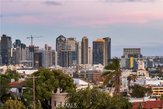 VIEWS! Penthouse Living with Panoramic Views! Beautifully renovated top-floor condominium in sought-after Middletown, featuring mid-century modern design touches throughout. Enjoy Bay, Ocean, City Lights, fireworks, Banker's Hill, and canyon views from the living area, kitchen, private balcony, and primary suite. Highlights include an open floor plan, dual primary bedrooms, updated kitchen and baths with granite counters, stainless steel appliances, in-unit laundry, and elevator-accessed garage parking with storage. The exterior of the community was recently painted and upgraded. Proximity to Balboa Park, San Diego Zoo, Downtown, Gaslamp, Little Italy, Old Town, public transportation, freeways, restaurants & nightlife. HOA includes water, trash, sewer, and building maintenance.