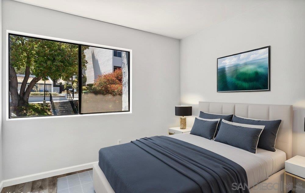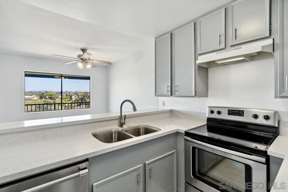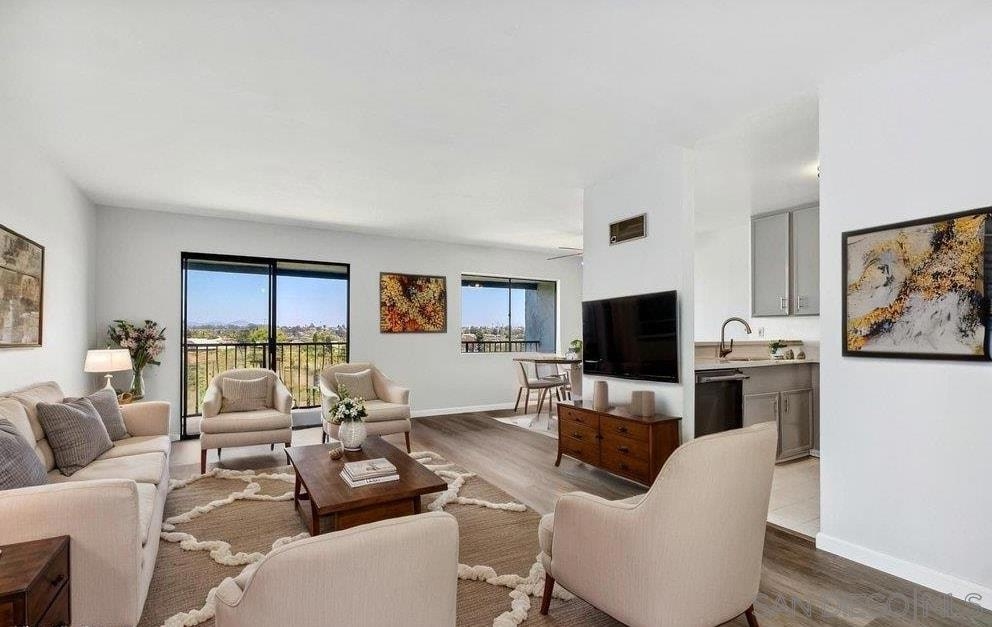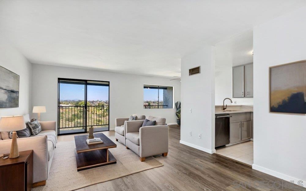 Welcome to Forest Park Plaza! Enjoy a cup of coffee sitting down from your balcony enjoying morning Sunrise, stunning, panoramic eastern views of the mountains, Tecolote Canyon, and the golf course from this newly upgraded unit. The community pool and recreation area are situated directly across from the unit. Ideally located near supermarkets, shops, and close proximity to MISSION BAY, easy access to Highway 5. Upgraded kitchen, spacious main bedroom features a generous walk-in closet. A one-car covered garage with a laundry area is conveniently located just downstairs. Some photos have been staged.