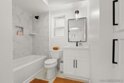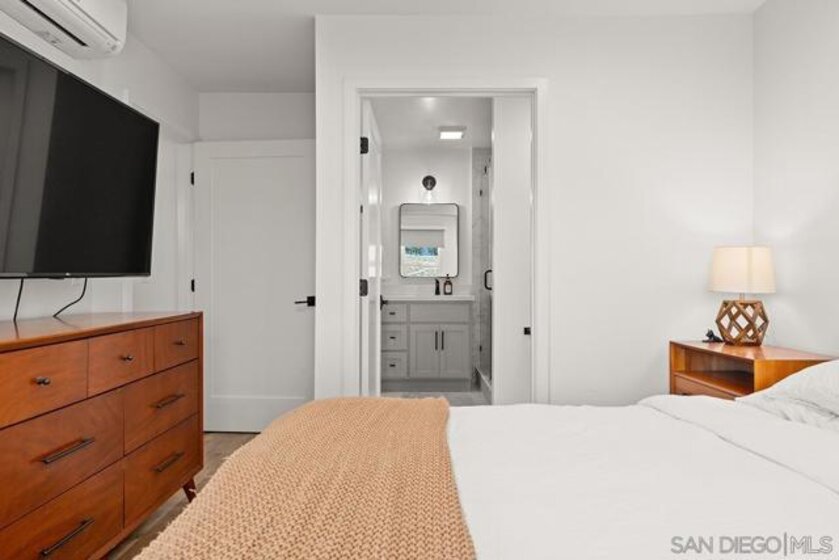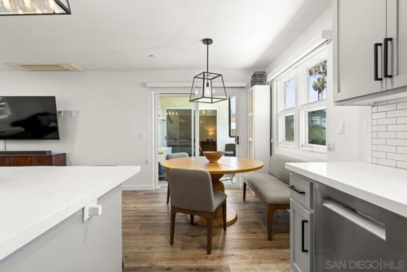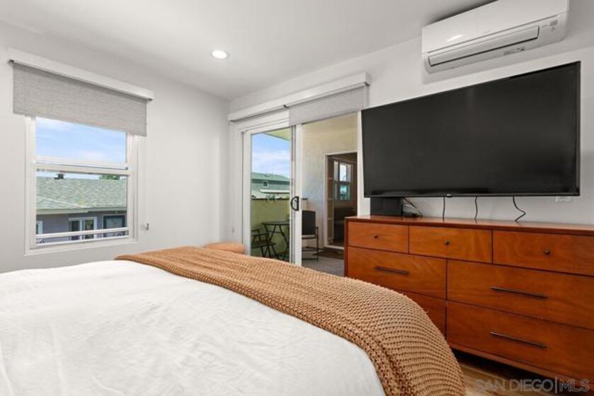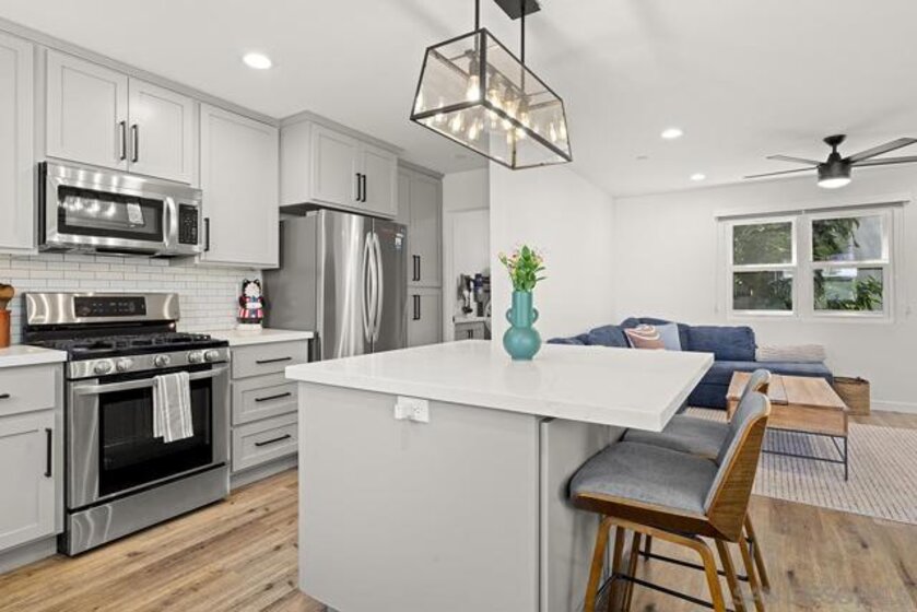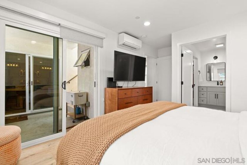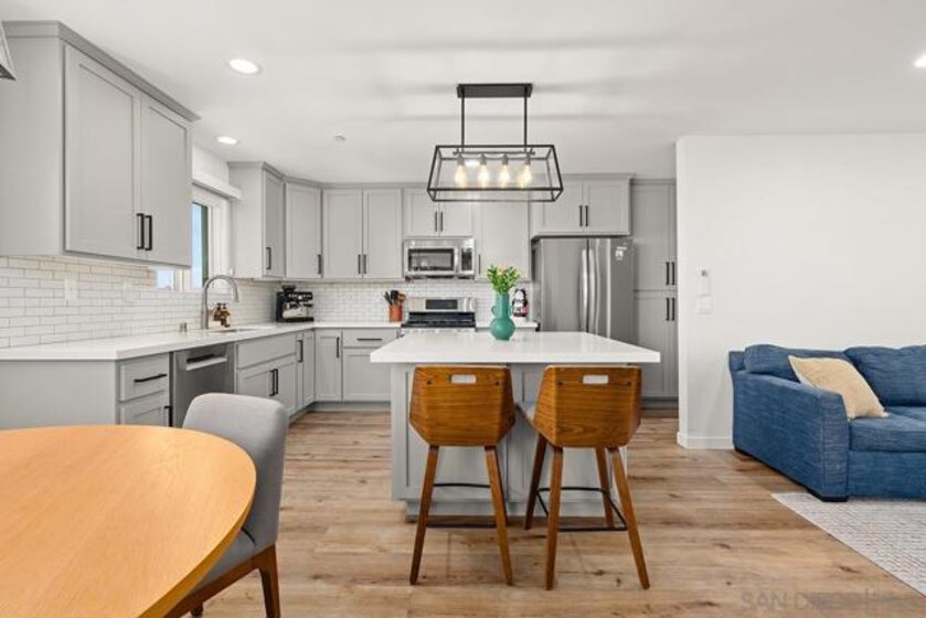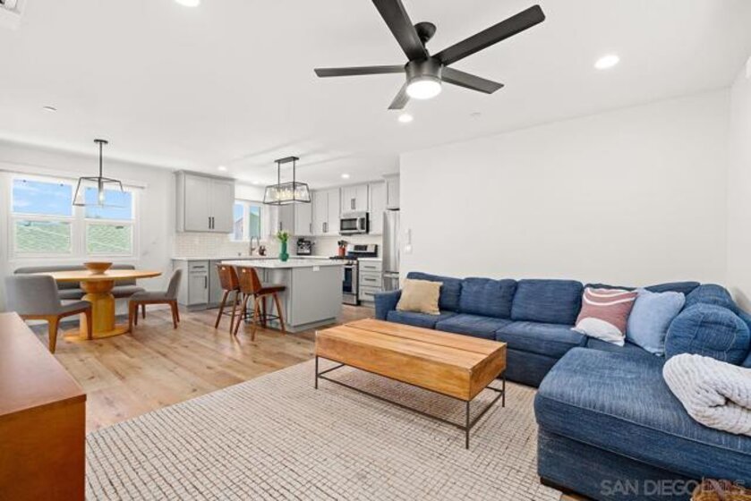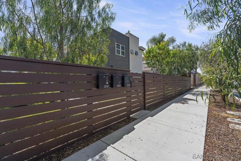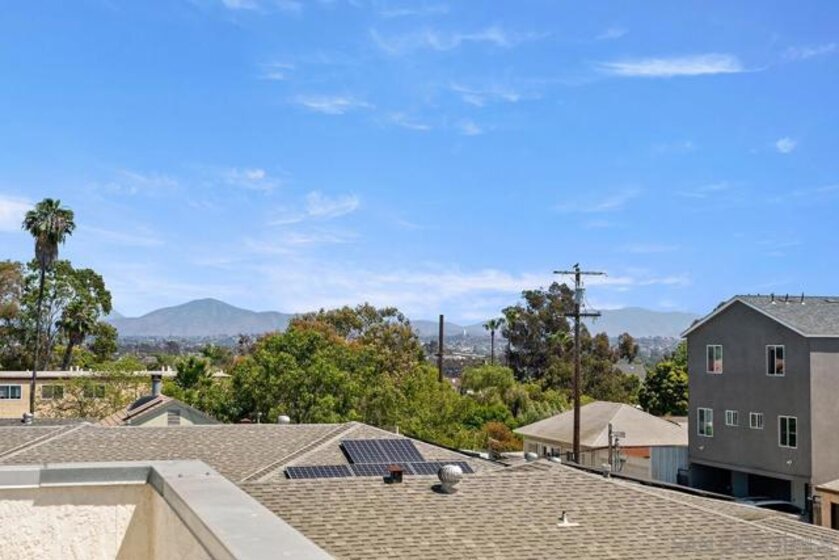 Ideally situated at the vibrant crossroads of South Park and Golden Hill, this striking townhome offers a rare blend of style, privacy, and location. One of only three residences in an exclusive gated enclave built in 2019, each home is fully detached—cleverly designed with faux connectors for aesthetic continuity—meaning no shared walls. The thoughtfully designed layout begins on the entry level, featuring an attached two-car garage, two spacious bedrooms, and a full bath—perfect for children, guests, or a home office. Upstairs, the light-filled main level showcases an open-concept design that connects the living, dining, and kitchen areas to an expansive patio, ideal for indoor-outdoor entertaining. This level also includes a powder room, laundry room, and a serene primary suite with direct patio access. At the top, a private rooftop deck delivers panoramic views from San Diego Bay to Mexico and beyond—creating an unforgettable setting for relaxing or entertaining. Enjoy unbeatable access to some of San Diego’s best dining, shopping, and nightlife, along with close proximity to Balboa Park, Petco Park, downtown, major freeways, and the airport. This is a rare opportunity to own a truly unique home in one of San Diego’s most sought-after neighborhoods. Additional highlights include a quiet, insulated garage door with LiftMaster system, an outdoor space/dog run behind the garage, Milgard Quiet Line double dual-pane windows, and modern efficiency upgrades like a tankless water heater and EV/solar readiness. The chef’s kitchen features a large quartz island, abundant soft-close cabinetry, and stainless LG appliances. A spacious primary bedroom walk-in closet, automatic gated alley access, and low $215/month HOA fees complete the package. No size restrictions on dogs.