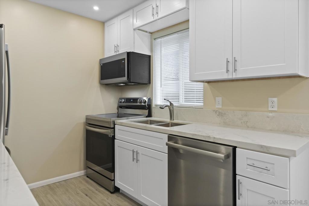 This custom remodeled one-bedroom condo in the Midway district boasts all-new appliances, a full-size washer and dryer, two mini-split AC units, and new LVP flooring. With its bottom floor location, large gated patio, and outdoor storage, it offers both convenience and comfort. Being in the heart of the Midway district, just 3 miles from Ocean Beach and Mission Beach, it provides easy access to outdoor activities and entertainment options. Don't miss out on this rare opportunity—condos in the Villa Marbella do not come available very often so do not miss out on this great opportunity to own your own home!!