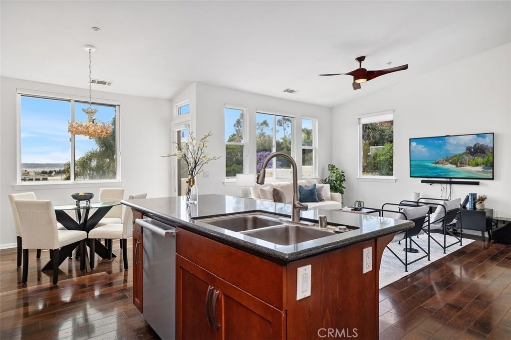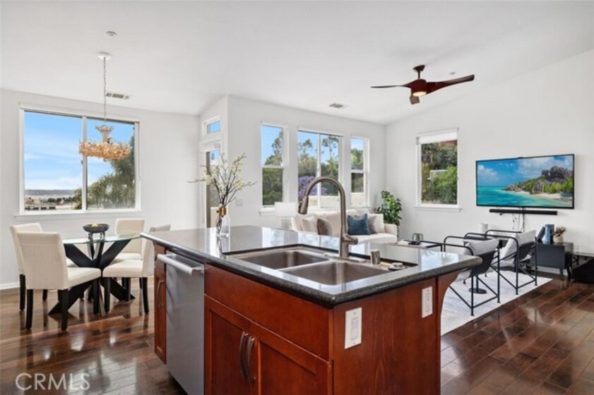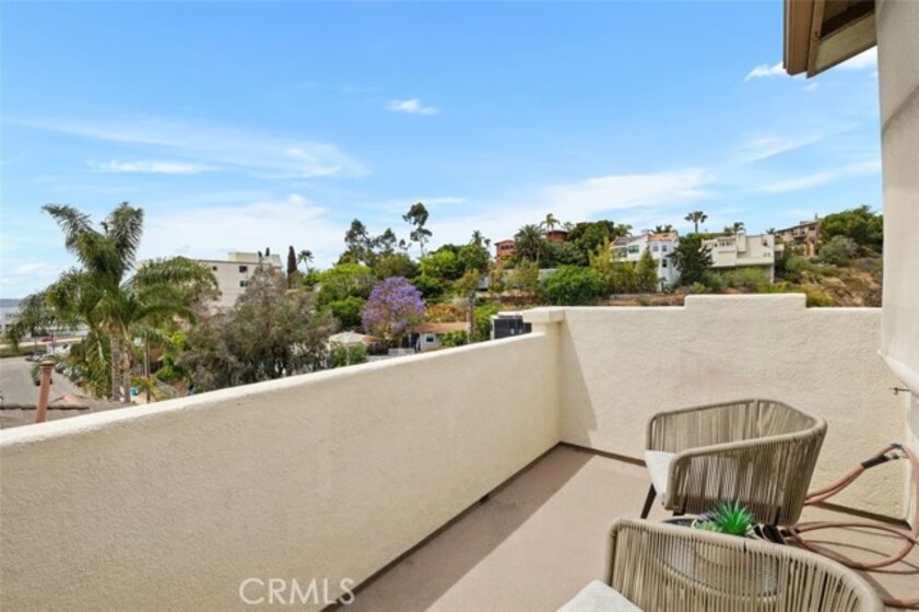 Panoramic views of Point Loma, San Diego Bay, and the Pacific Ocean define this exceptional three-story end-unit townhouse. A dramatic entry opens to stunning water views and a light-filled living space designed for both comfort and entertaining. The home features only 1 common wall, 3 bedrooms, 2 bathrooms, a gourmet kitchen with premium appliances, and a spacious living/ dining area that opens to a balcony with bar seating overlooking the Bay. The private primary suite occupies its own floor and features a large bathroom and walk-in closet. Freshly painted with high-end upgrades throughout include cherry hardwood flooring, Miele appliances, Sub-Zero refrigeration, Hunter Douglas blinds, and Hansgrohe fixtures. The oversized two-car garage includes epoxy flooring and custom cabinetry. Ideally located near Little Italy, Mission Hills, Downtown, and San Diego Bay, with quick freeway access while maintaining a private, tucked-away feel. This is the one you’ve been waiting for; where views, luxury, and location all come together.