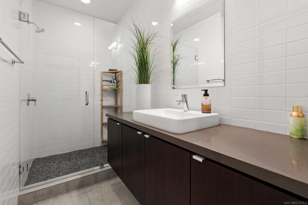 A seldom available Bankers Hill offering, this 1,689 sq ft residence is set within a peaceful, intimate 10-unit community and distinguished as the only three-bedroom home in the development. A distinctive and thoughtfully designed floor plan, seldom found in the neighborhood, offers exceptional flexibility — ideal for guests, work-from-home needs, or multigenerational living. Filled with natural light, the home is enhanced by dramatic sliding glass doors that fully retract, creating an elegant indoor-outdoor connection. Rooftop bay and ocean views provide a refined backdrop for entertaining or quiet retreat. Interior finishes reflect a curated design sensibility, including quartz countertops, a designer backsplash, upgraded designer porcelain tile and carpet throughout, and ceiling fans in every room. The kitchen is appointed with a five-burner cooktop with built-in motorized vent and a new KitchenAid refrigerator, while California Closets throughout deliver exceptional storage and organization. The residence offers two full bathrooms, with the primary suite featuring a porcelain soaking tub and striking floor-to-ceiling tile, creating a spa-like experience. A highly desirable 2.5-car garage and low HOA fees complete the offering. Ideally located just moments from Balboa Park, downtown San Diego, dining, and cultural destinations, this home presents a refined blend of space, privacy, design, and location in one of the city’s most coveted neighborhoods. A truly rare Bankers Hill offering.This thoughtfully designed 1,689 sq ft residence is located within a peaceful, intimate 10-unit community where properties are seldom available and stands out as the only three-bedroom home within the development. Featuring a distinctive floor plan rarely found in the neighborhood, the home offers exceptional flexibility, perfect for guests, work-from-home needs, or multigenerational living in one of San Diego’s most sought-after locations. Positioned to capture abundant natural light, the residence is further elevated by dramatic sliding glass doors that fully retract, creating a seamless indoor-outdoor connection and an open, airy living experience. Expansive bay and ocean views from the rooftop add an additional layer of rarity rarely found in Bankers Hill. The interior is enhanced with quartz countertops, a designer backsplash, upgraded designer porcelain tile flooring and carpet throughout. Ceiling fans thoughtfully added in every room. The kitchen is appointed with a five-burner cooktop featuring a built-in motorized vent and new KitchenAid refrigerator. California Closets throughout provide exceptional storage and organization. Includes two full bathrooms and is completed by a highly desirable 2.5 car garage, an exceptional feature in this central urban setting. Located just moments from the restaurants, cafés, and cultural amenities of Hillcrest and Bankers Hill with close proximity to Balboa Park,downtown San Diego, and major freeway access. Homes within this community rarely come to market, making this an exceptional opportunity.