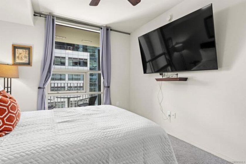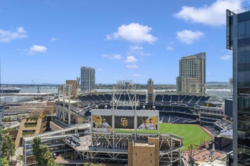 Enjoy breathtaking west-facing views of Petco Park, the bay, and the ocean from this spacious 1 bed/1 bath residence at ICON. Floor-to-ceiling windows and a private balcony showcase the scenery, while the open layout features newer flooring, a granite kitchen with gas range and stainless steel appliances, in-unit laundry, and a recently upgraded HVAC system. Includes 1 prime parking space plus storage. ICON offers exceptional amenities including the Skybox rooftop lounge, fitness center, private theater, clubhouse, and 24/7 security. Located in the heart of East Village/Ballpark District, just steps to dining, nightlife, and entertainment. ICON – Premier Downtown Living. ICON offers one of Downtown San Diego’s best amenity packages, featuring a Rooftop Skybox with BBQs, TVs, and stadium seating overlooking Petco Park and panoramic views of the city, bay, and ocean. Additional highlights include a 1,700 sq ft fitness center, 15-seat movie theater, resident lounge with kitchen, landscaped courtyard, 24/7 security, on-site management, and secured underground parking. All just steps from Petco Park, the Gaslamp Quarter, Rady Shell, trolley, FIT Gym, and top dining and nightlife.