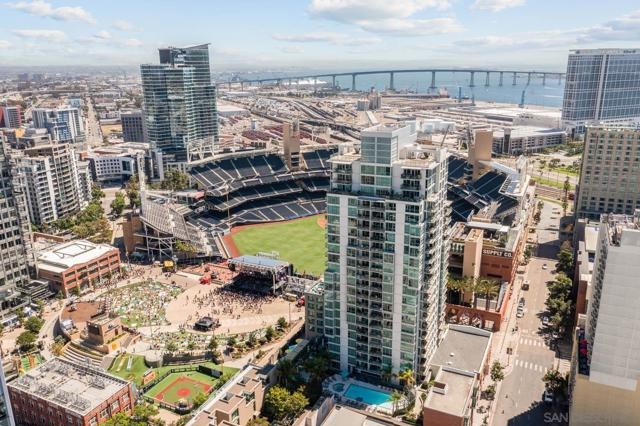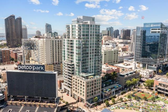 Welcome to Residence 1901, a rare opportunity to own in The Legend—the only luxury high-rise built inside the gates of Petco Park. Perched above the city, this stunning condo blends modern design with one-of-a-kind views, placing you at the center of San Diego’s vibrant downtown lifestyle. Step inside to find brand-new flooring, an open-concept kitchen, and dramatic floor-to-ceiling windows that flood the space with natural light. The private balcony is perfect for morning coffee or evening cocktails while enjoying panoramic skyline views. Two beautifully finished marble bathrooms add a touch of timeless elegance, and the residence also includes a dedicated storage unit and secure parking. At The Legend, every detail is designed for resort-style living. Amenities include a grand lobby with full-time front desk staff, sparkling pool and spa, state-of-the-art fitness center, and an expansive 7th-floor rooftop deck overlooking the Padres’ home plate—arguably the best sports-viewing deck in the city. You’ll also enjoy an outdoor lounge with barbecue grills and direct views into Gallagher Square for concerts and events. Beyond the building, some of San Diego’s best restaurants, coffee shops, and nightlife are just steps away. The Bayfront, Gaslamp Quarter, Seaport Village, and Convention Center are all within walking distance, making this residence the perfect blend of excitement, convenience, and comfort. Residence 1901 isn’t just a home—it’s a front-row seat to the best of San Diego.