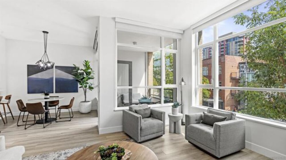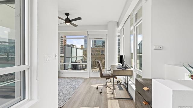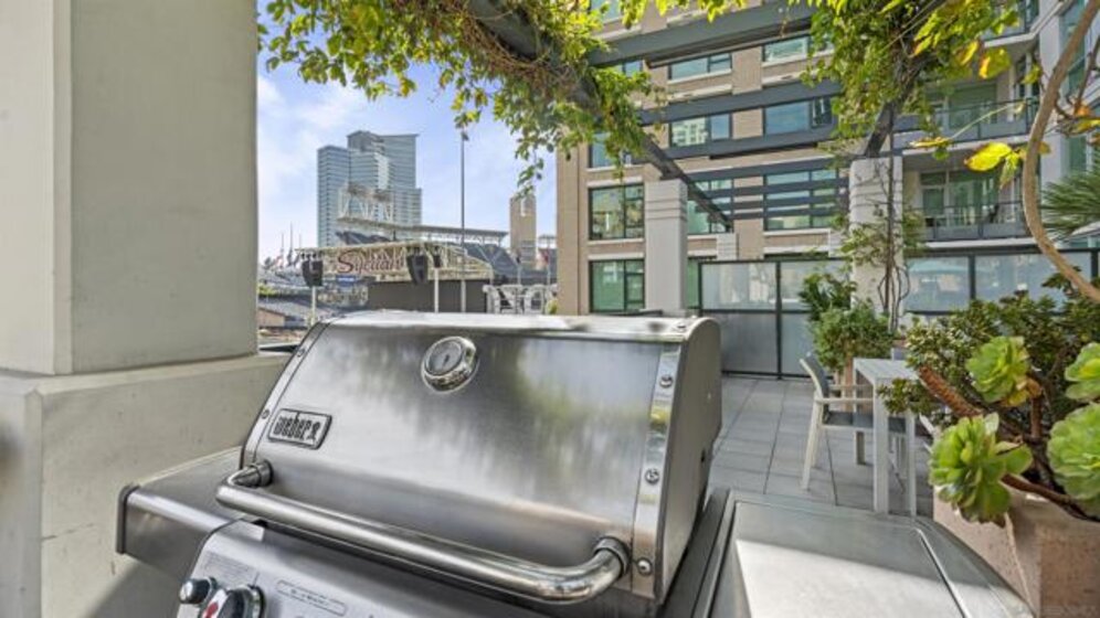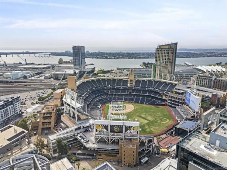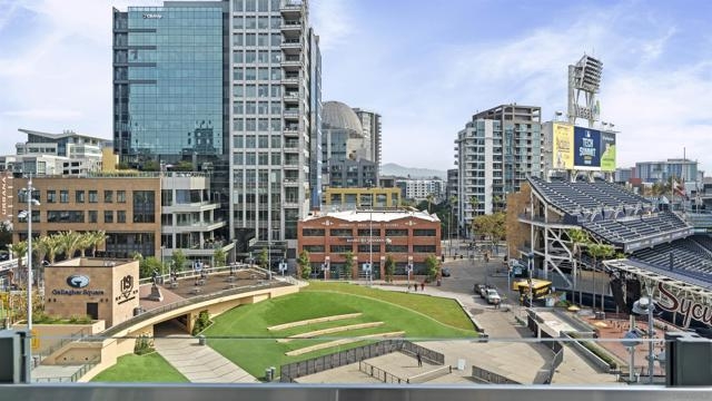 Rarely available townhome at The Legend—lives like a single-family home with four private patios and panoramic views straight into Petco Park and the concert stage. Fully renovated in 2022, this luxury corner residence features a designer kitchen, open living areas, guest bath, two ensuite bedrooms, and a loft leading to the rooftop patio. Includes two parking spaces, motorcycle spot, and private storage, with option to be sold fully furnished. Enjoy 24-hour security, concierge, gym, sauna, pool, BBQ areas, and the iconic 7th-floor deck overlooking Petco Park.