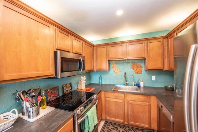 Welcome to this open and bright 2BR/1BA condo in the gated community of Ocean View Townhomes. This top-floor residence features tasteful upgrades throughout, including recessed lighting in the kitchen and living room, modern ceiling fans, high-efficiency stainless steel appliances, updated countertops with a deep sink and designer faucet, and sleek under-cabinet lighting. Complete with covered parking and quick freeway access, this home delivers both style and convenience at an exceptional value