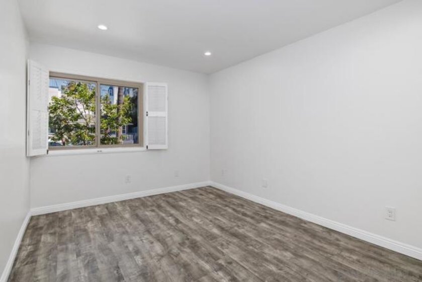 Large, Bright, Open Floor Plan Unit with a Chef's Dream Kitchen located just 4 blocks away from Balboa Park. 2 Full Bathrooms, Gated Garage Parking, Central A/C, Stainless Steel Appliances, Abundant Cabinets in Kitchen, Recessed Dimmable Lighting, & Remodeled Bathroom. This unit is perfect for entertaining with a large kitchen island, open to the living room and patio, single story, large master bedroom & second bedroom walk in closet. In-building guest room available to use for up to 15 days. Quiet area with plenty of street parking with privacy tinted windows.