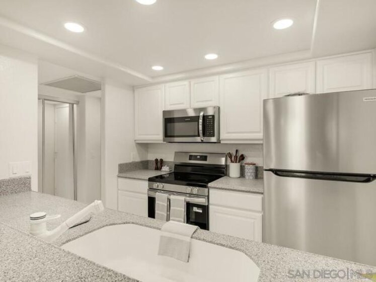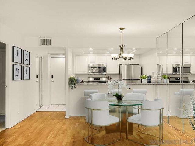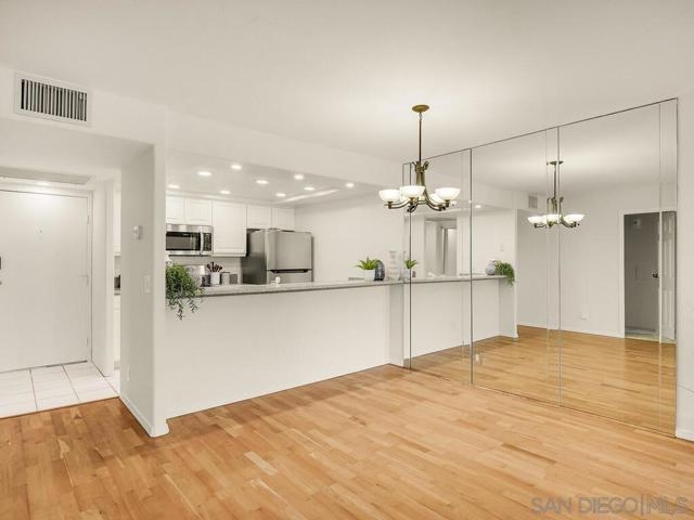 What a great find that won't last a second! Centrally located in the Balboa Park/Hillcrest communities in the Coral Tree Plaza. Central to restaurants, shopping, freeways, the airport, and downtown. The condominium is in turn key condition offering a spacious balcony with canyon and Balboa Park Views, Hardwood wood floors in the Living Room/Dining combination, new stainless kitchen appliances with a sit down bar/dining area, spacious primary bedroom with views and new plush carpet, enormous walk-in closet, interior laundry hook-ups for a stacked washer and dryer, nice vanity area with plenty of linen space and private bath, desirable amenities with tennis, pool/spa and club house, Dog Park and TWO underground parking spaces which is a rarity.