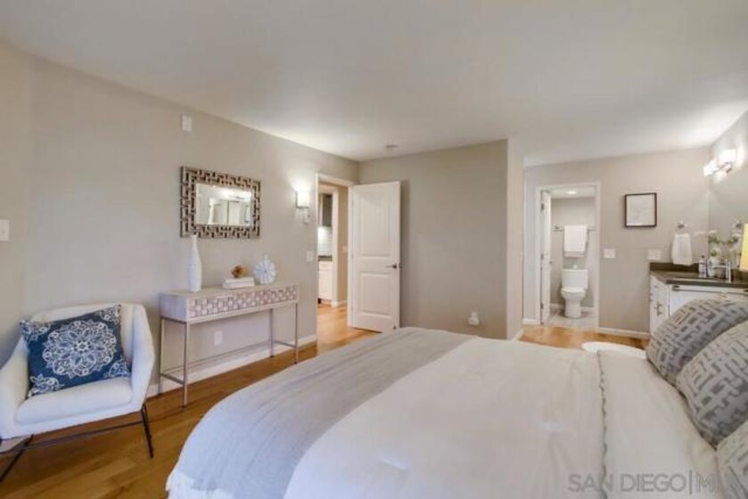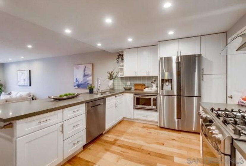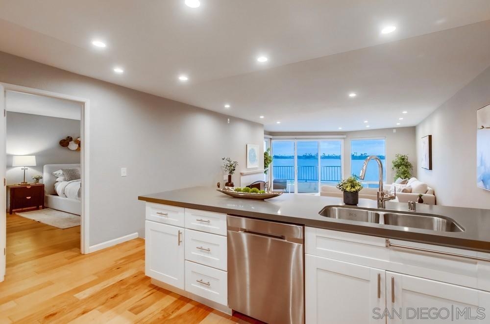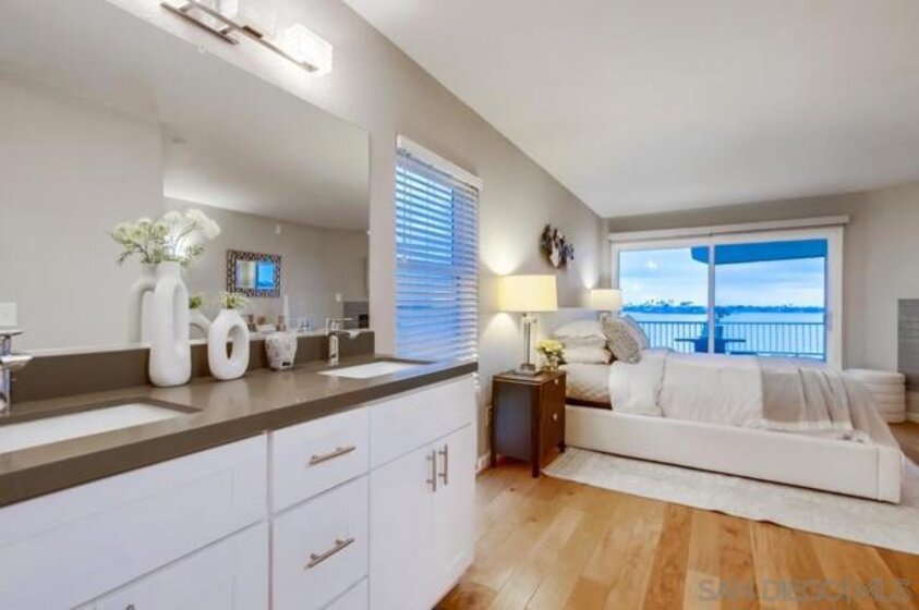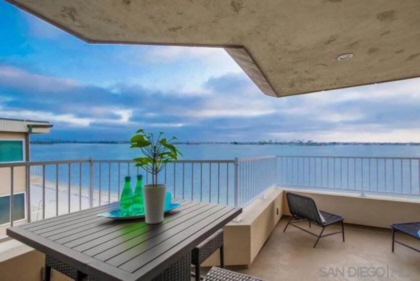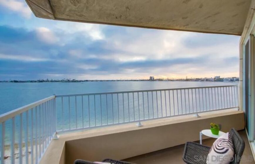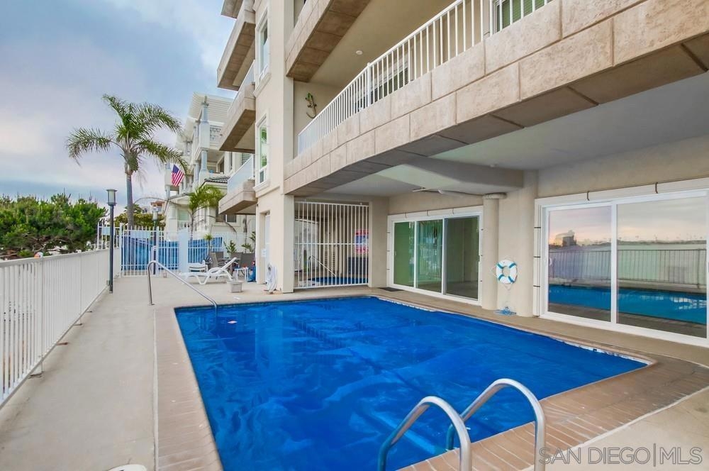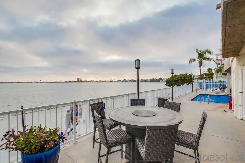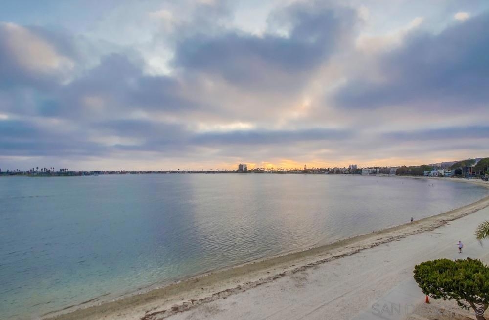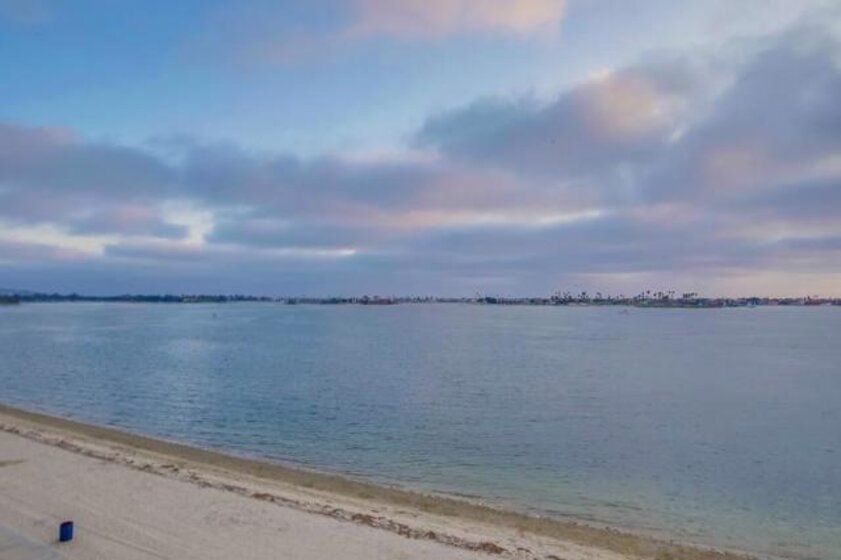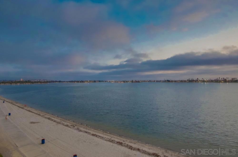 Stunning Mission Bay penthouse with panoramic views of the bay and ocean! Featuring 3 spacious bedrooms, 2 bathrooms, open concept floor plan, and in-unit laundry room/pantry, this top floor corner unit is ready for you to move right in and start enjoying life by the beach. The large balcony off the living room and primary bedroom is the perfect spot to take in summer sunsets and the ocean breeze. Enjoy walks or bike rides in your "backyard" on the bay. Don't want to get sandy? The community also includes a pool and spa overlooking the water. With two assigned underground parking spaces and additional garage storage, this condo truly has it all!