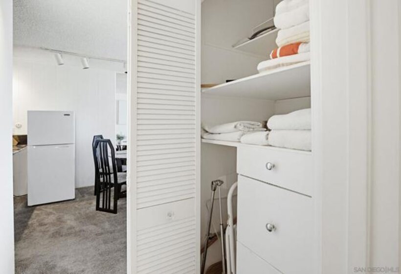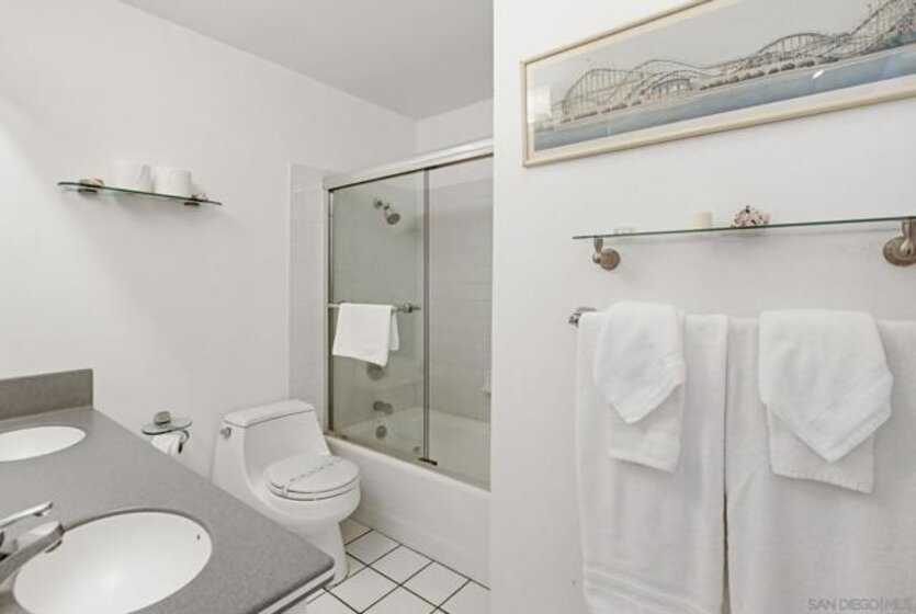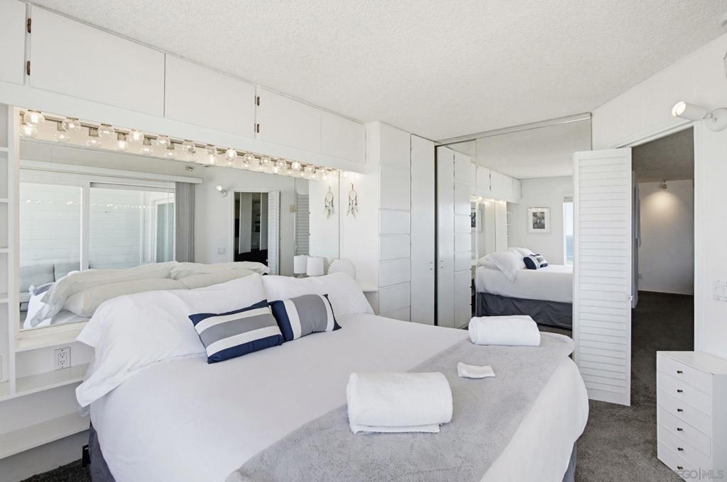 Top floor Mission Beach condo with endless Pacific Ocean views! This 2 bedroom "Top of the Beach" complex property showcases the Mission Beach lifestyle- views, the iconic boardwalk, walkability & the sand/ocean at your doorstep. It's an open floorplan with those ocean views right from the front door. Large bedroom upon entry with lots of storage options & built ins. Bedroom 2 capitalizes the top floor location with large windows, forever views right from the bed & the proximity to fall asleep to crashing waves at night! Great balcony space for sharing sunsets with friends or watching the world go by below. Ideal location in Mission Beach with all the dining, entertainment & shopping in this desirable commercial corridor. The complex features an elevator, a secure/gated parking spot, community laundry & they are just now completing a beatification project with fresh paint. Beach retreat, vacation rental, second home or your main house...you can't go wrong on this one!