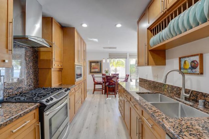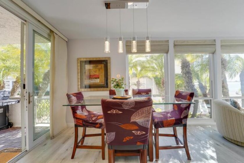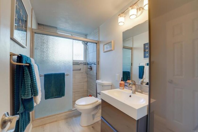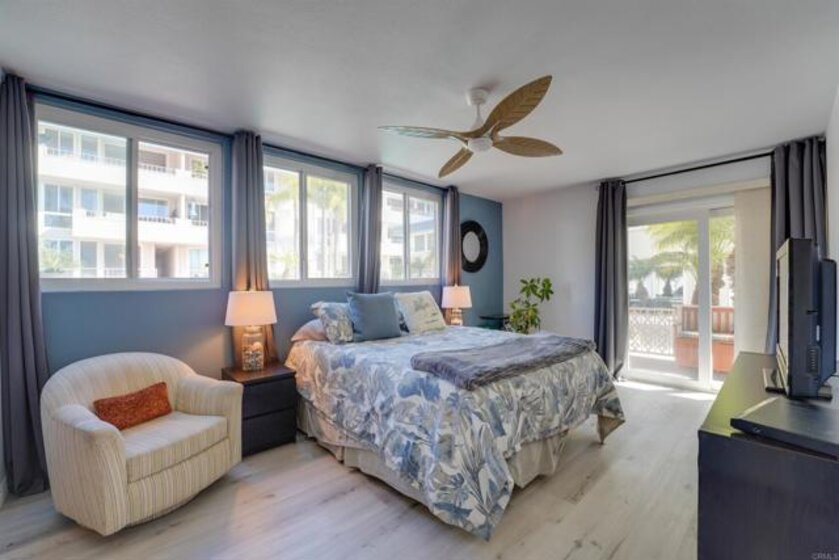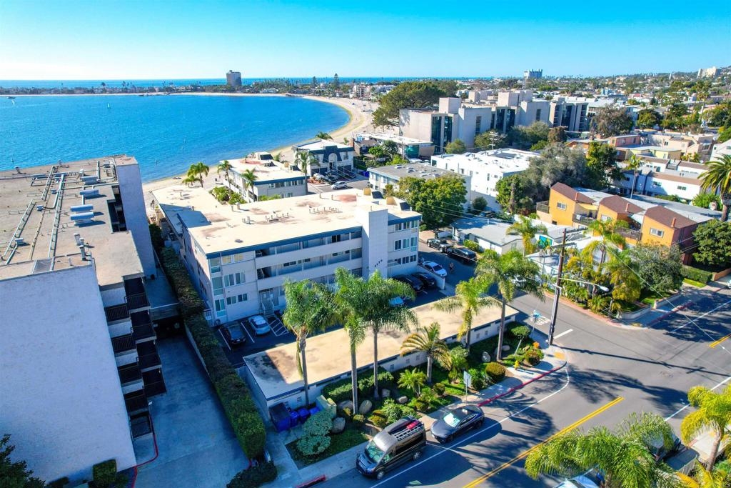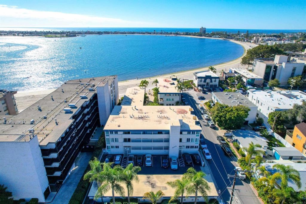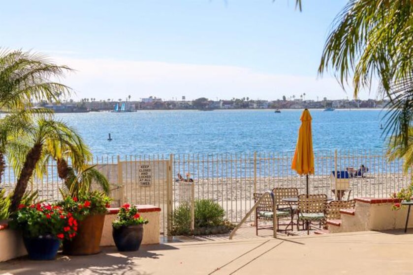 Welcome to Riviera Shores on Sail Bay, where waterfront tranquility meets the best of Pacific Beach living. This rare ground-floor 3BR/2BA condo is just steps from the sand and offers the ease of single-level living with no interior stairs. Bright corner windows frame beautiful bay views from the living and dining areas, while the spacious layout includes an updated kitchen, new LVP flooring, dual-pane windows and sliders, a generous primary suite, and two tastefully remodeled bathrooms with walk-in showers. The oversized covered patio creates seamless indoor-outdoor living and a front-row seat to the Sail Bay lifestyle. Residents enjoy a sparkling community pool, covered parking, in-unit laundry, bike and surfboard storage, and direct access to the scenic boardwalk stretching around the bay toward Crown Point and beyond. A rare chance to own a spacious bayfront home in one of Pacific Beach’s most desirable settings.