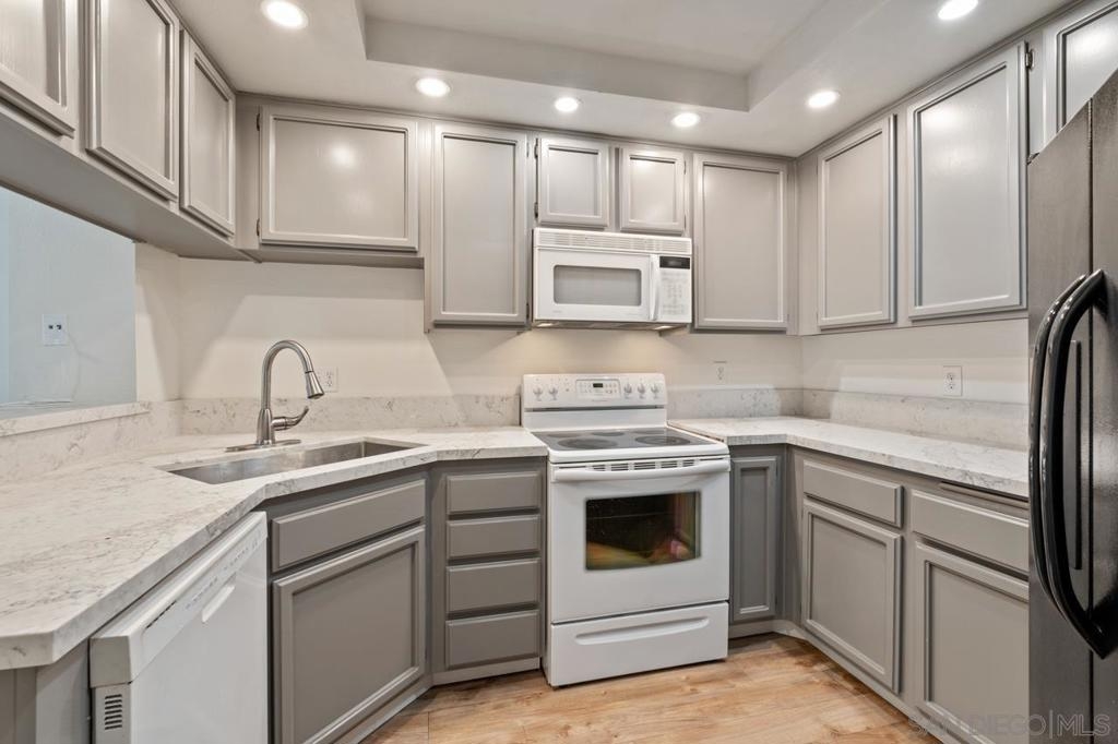 Located in the Redwood Village gated community, is a recently remodeled tri-level townhome, 2 bedroom, 2.5 bath with 2 balconies, a fenced front patio area , and direct entry from private 1 car garage with an additional assigned space. Upgraded kitchen with quartz countertops and vinyl flooring throughout home. Laundry room on bottom floor has ample space for storage. Minutes from SDSU, walking distance to shops, and close access to multiple freeways. VA and FHA loans welcome & LOW HOA!