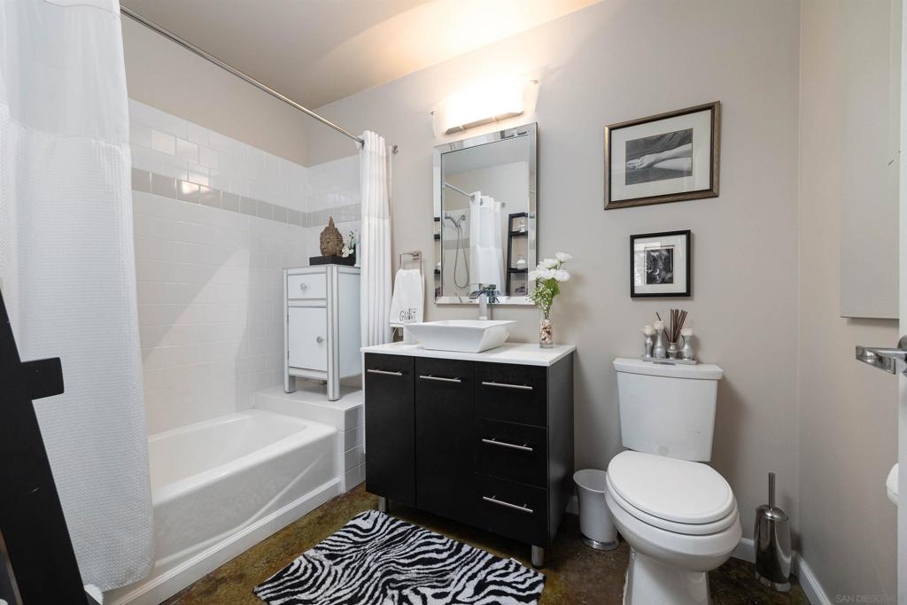 Own a piece of San Diego history in the iconic Cable Building Lofts-originally a 1950s industrial structure that once served as a Pacific Bell telephone switching station & thoughtfully converted into residential lofts in 1998 as one of Southern California’s pioneering adaptive reuse projects. This recently renovated top-floor corner unit showcases true loft character with 12-foot ceilings, exposed red brick walls, stained concrete floors & expansive windows that flood the space with natural light. The modern kitchen features sleek cabinetry, stunning quartz countertops, a large island with seating for four & high-quality stainless steel appliances-perfect for both everyday living & entertaining. The open concept living area is spacious & inviting, while the private primary bedroom is fully enclosed with walls and a door for added comfort. While currently presenting as a one bedroom, a dedicated home office area offers oversized desk space with the flexibility to be converted into a second bedroom (approx. 11’x11’). Google Fiber (hi-speed internet) included in HOA fees! A cozy balcony w/ easterly exposure overlooks the vibrant community of Hillcrest. Additional highlights include two parking spaces—an exceptional find in Hillcrest—HOA-approved EV charger capability, a large private secured storage area & built-in storage cabinets conveniently located in front of the parking space. Ideally situated in the heart of Hillcrest, you’re just moments from shopping, dining, nightlife, major freeways, medical centers, downtown San Diego, and Balboa Park. CAN BE SOLD FULLY FURNISHED! Own a piece of San Diego history in the iconic Cable Building Lofts-originally a 1950s industrial structure that once served as a Pacific Bell telephone switching station & thoughtfully converted into residential lofts in 1998 as one of Southern California’s pioneering adaptive reuse projects. This recently renovated top-floor corner unit showcases true loft character with 12-foot ceilings, exposed red brick walls, stained concrete floors & expansive windows that flood the space with natural light. The modern kitchen features sleek cabinetry, stunning quartz countertops, a large island with seating for four & high-quality stainless steel appliances-perfect for both everyday living & entertaining. The open concept living area is spacious & inviting, while the private primary bedroom is fully enclosed with walls and a door for added comfort. While currently presenting as a one bedroom, a dedicated home office area offers oversized desk space with the flexibility to be converted into a second bedroom (approx. 11’x11’). Google Fiber (hi-speed internet) included in HOA fees! A cozy balcony w/ easterly exposure overlooks the vibrant community of Hillcrest. Additional highlights include two parking spaces—an exceptional find in Hillcrest—HOA-approved EV charger capability, a large private secured storage area & built-in storage cabinets conveniently located in front of the parking space. Ideally situated in the heart of Hillcrest, you’re just moments from shopping, dining, nightlife, major freeways, medical centers, downtown San Diego, and Balboa Park. Can be sold fully furnished!