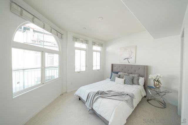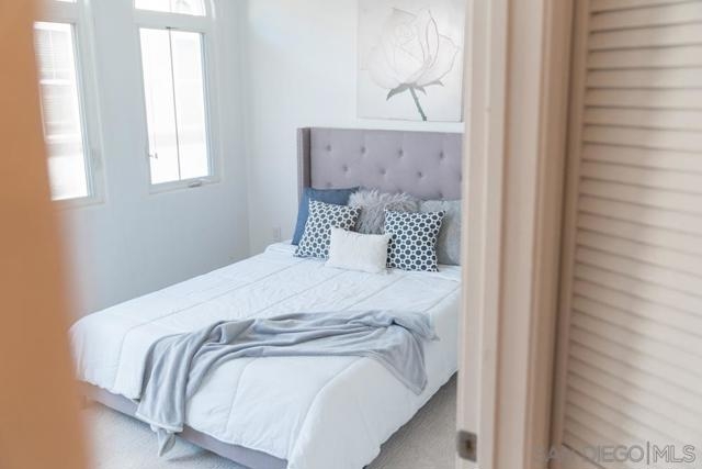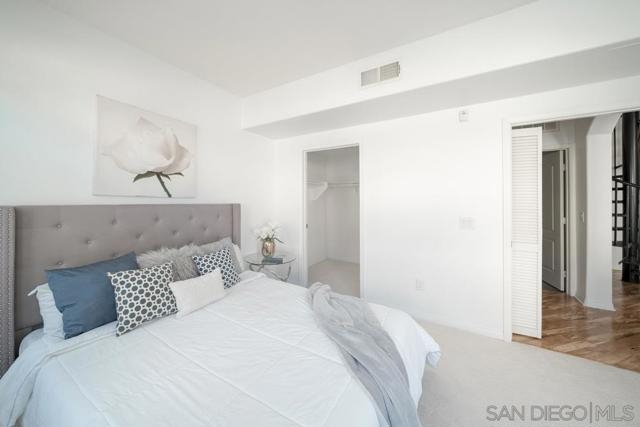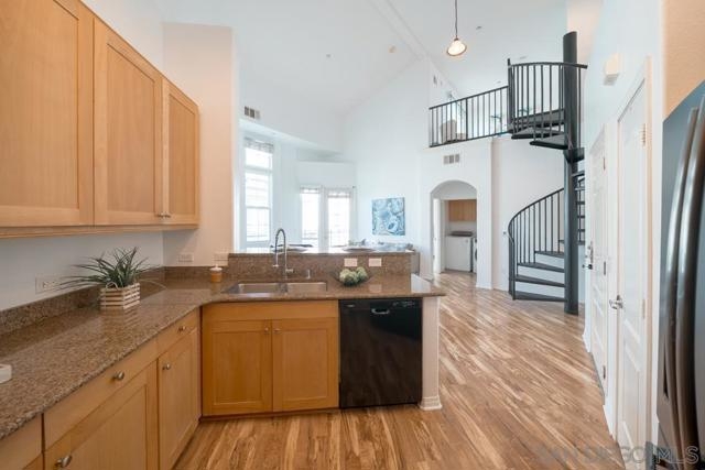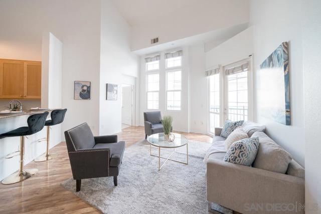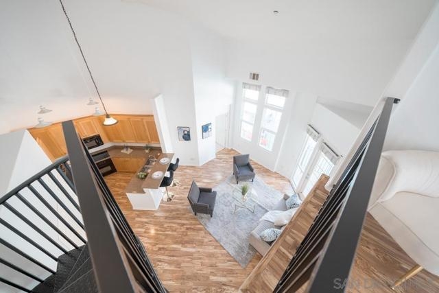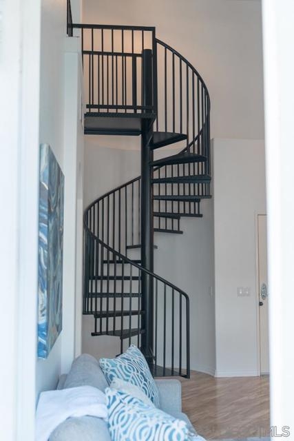 In the sought-after La Bohème community, discover one of North Park’s most stunning residences! This top-floor, west-facing showpiece at Unit 507 features soaring 20+ foot ceilings, and dramatic two-story windows The open layout seamlessly blends kitchen, dining, and living areas, centered around a striking spiral staircase. The primary suite boasts a spa-sized bathroom and a generous walk-in closet, while a second bedroom, full bath, and full-size laundry complete the main level. Step outside to your first private balcony for breezy outdoor living, or head upstairs to the versatile loft—perfect as a home office, media lounge, or guest space—complete with its own second balcony and views of the ocean, Coronado and the islands. Life at La Bohème offers the ultimate convenience: two non-tandem parking spaces, hot tub, gym, sauna, dog wash station, recreation spaces, and HOA dues that cover water, internet, and more. All this in the heart of North Park with a 10/10 walkability score—restaurants, coffee shops, breweries, and boutiques are just steps away.