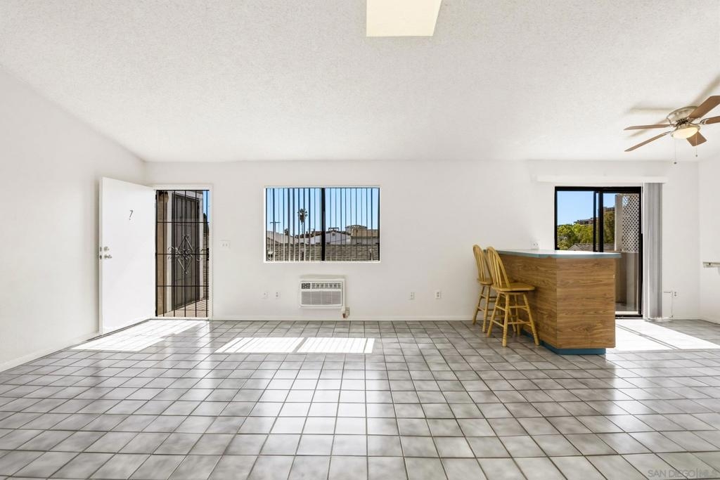 Experience North Park living in this spacious 924 sqft, 2-bedroom, 2-bath condo in a highly desirable location. This light-filled unit is on the top floor and features vaulted ceilings, a skylight, and a cozy gas fireplace, creating an open and airy feel. The spacious primary bedroom includes an en-suite bath and walk-in closet, while the kitchen is equipped with stainless steel appliances. Additional highlights include an in-unit washer and dryer, a private balcony, and two parking spaces—one detached garage and an additional driveway spot. The home is move-in ready with the opportunity to add your own cosmetic touches. Ideally situated between North Park, Hillcrest, and University Heights, you’ll enjoy easy access to popular restaurants, shops, and entertainment.