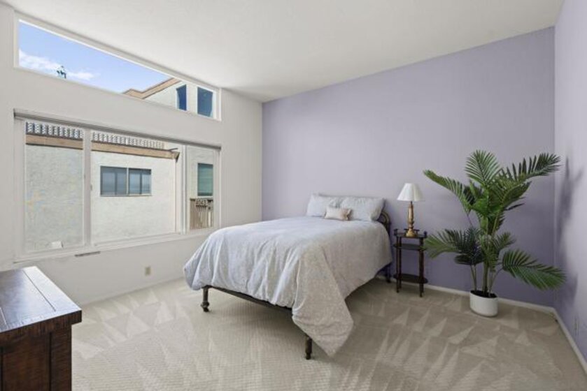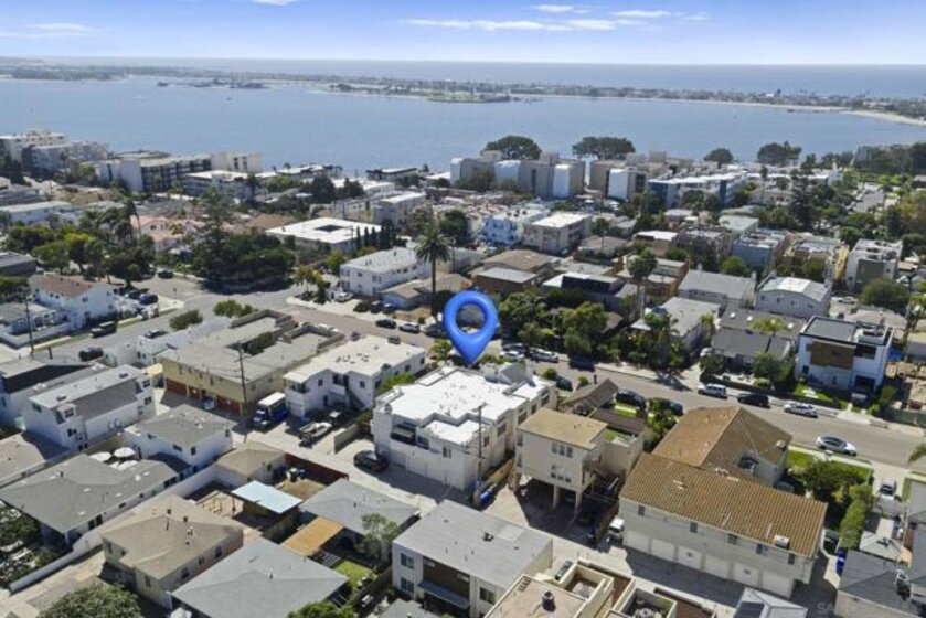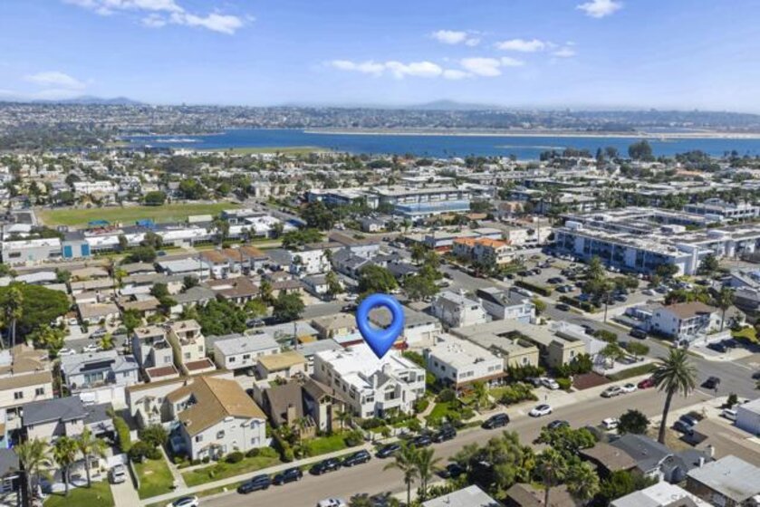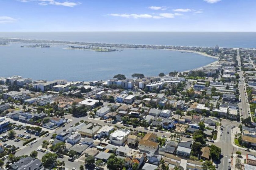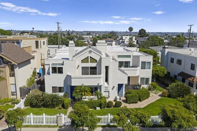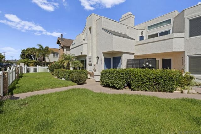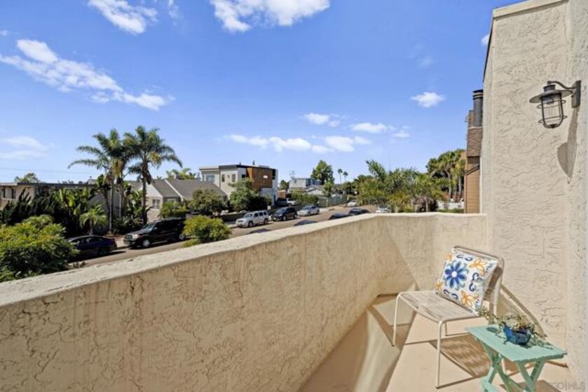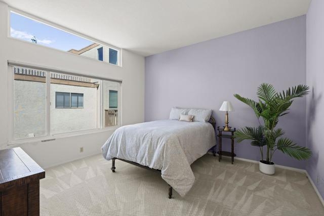 Nestled on a serene street just a stone's throw from Sail Bay, this sun-drenched 2-bedroom, 2-bathroom beach home offers the ease of single-story living. Vaulted ceilings and large windows create a light and bright ambiance throughout the open floor plan. Unwind on your private, west-facing balcony and enjoy a "peek-a-boo" view of Mission Bay. The private primary suite is a true retreat, featuring a full walk-in closet and ensuite bathroom. A walk-in pantry in the kitchen and built-in garage storage provide abundant space for your belongings. A full washer and dryer are conveniently located in the attached tandem two car garage.