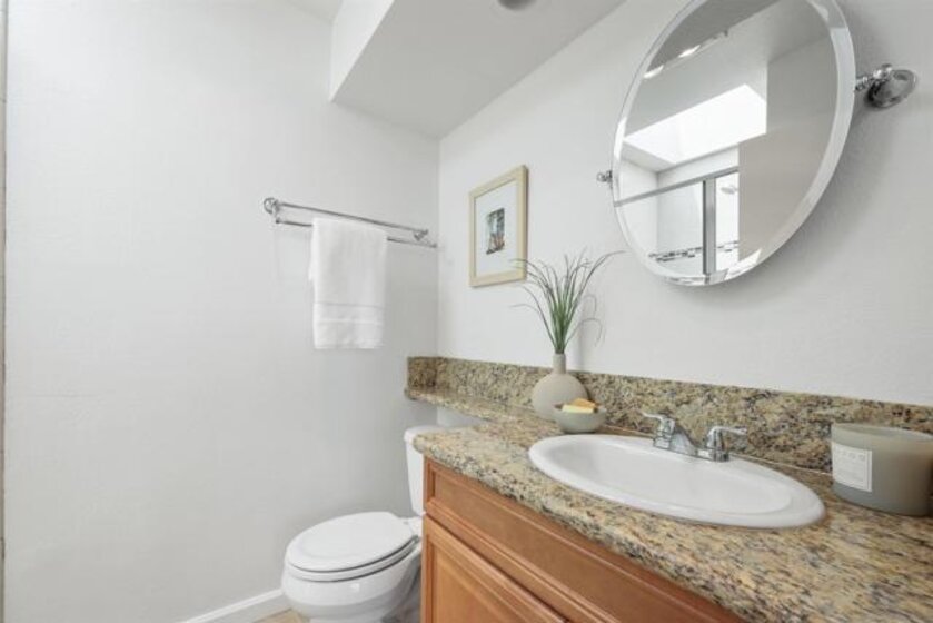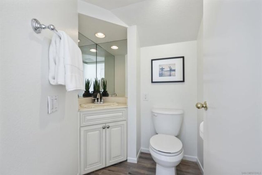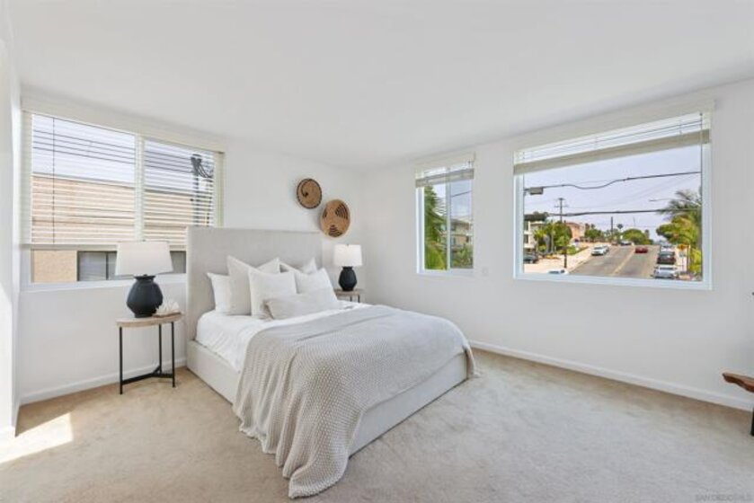 Great location in the heart of Crown Point! Just 2 blocks from Sail Bay and less than a mile from the Pacific Ocean. This bright condo features an open concept living area, a half bath, and in-unit laundry. Upstairs you will find 2 spacious bedrooms, each with its own en suite bathroom. There are 2 assigned parking spaces and a large storage closet in an underground, gated garage with direct access to the unit.