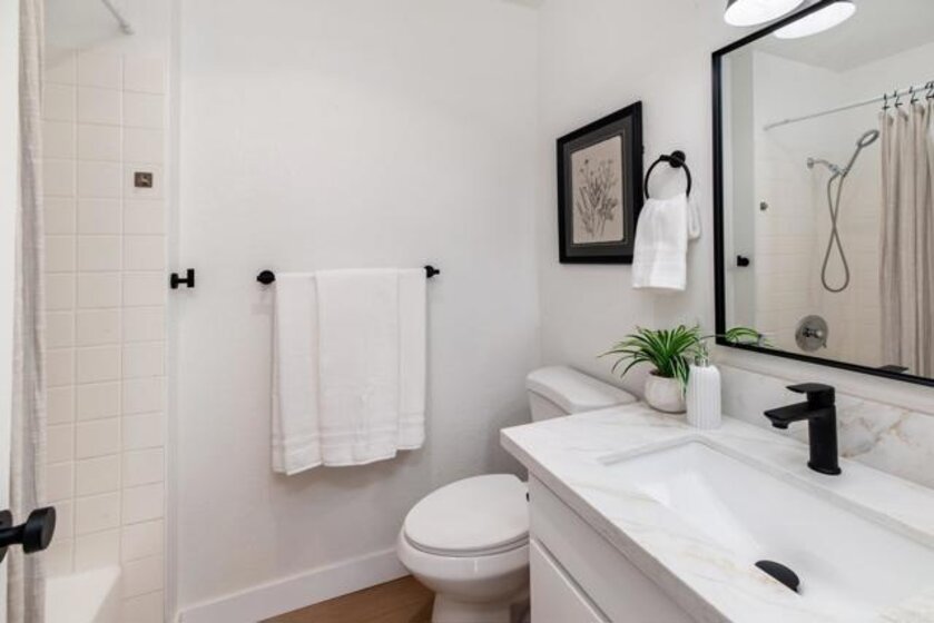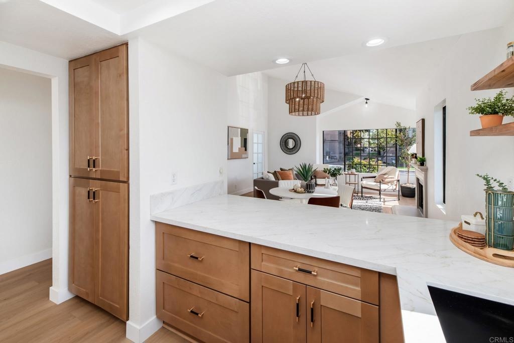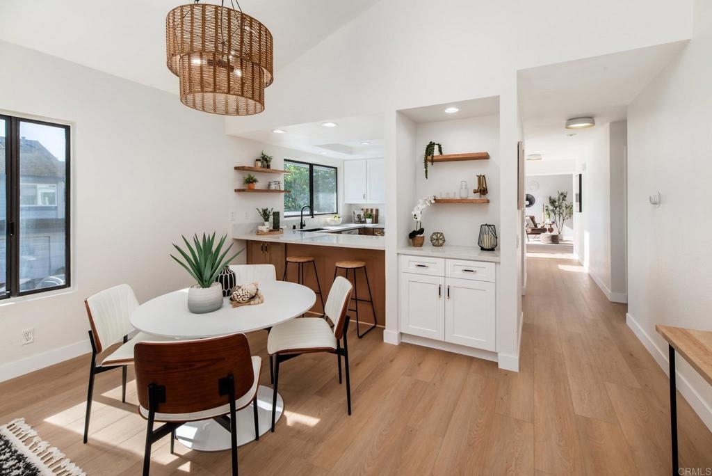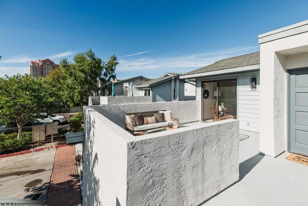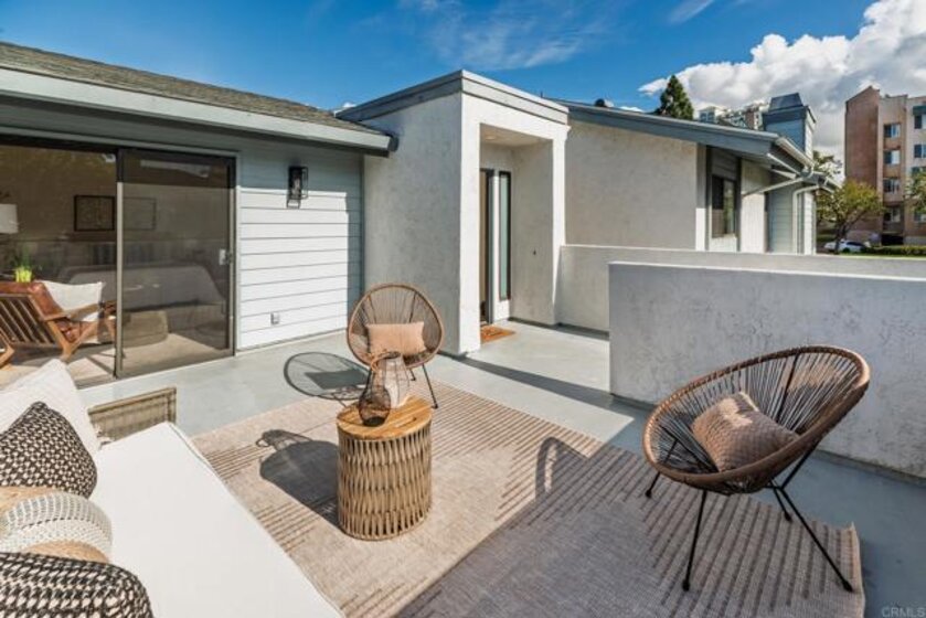 Set within the highly desirable La Jolla Village Park community, this beautifully updated end-unit residence stands out for its privacy, natural light, and exceptional outdoor space. With only one shared wall and no neighbors above, the home feels peaceful and tucked away, yet remains perfectly positioned near the heart of La Jolla and University City. Vaulted ceilings and an abundance of windows create a bright, airy atmosphere throughout, making everyday living feel both comfortable and refined. The home has been thoughtfully and extensively updated, starting with a full kitchen remodel completed in December 2025. Shaker cabinetry, quartz countertops, new appliances, and a raised ceiling with modern CAN lighting elevate the space and create a natural gathering point. Both the primary and guest bathrooms have been refreshed with quartz counters, updated fixtures, and painted cabinetry, while new LVP flooring in the main living areas, plush carpet in the bedrooms, fresh interior paint, updated lighting, and new vanity mirrors complete the move-in-ready feel. One of the home’s most unique features is its exceptional outdoor living. Enjoy two private patios wrapped in greenery, offering direct sunlight and the largest private outdoor space in the community, perfect for morning coffee, entertaining, or simply unwinding at the end of the day. Large bedrooms provide comfortable retreats, and a private one-car garage with storage sits conveniently at the base of the stairs, complemented by an additional parking located directly next to the unit. Residents of La Jolla Village Park enjoy resort-style amenities including a pool, spa, lighted tennis courts, racquetball courts, and beautifully maintained grounds. Low HOA fees cover water, sewer, trash, exterior and roof maintenance, pest control, and more, with a new roof completed in 2025 and a full exterior refresh planned for 2026. With a Walk Score of 84 and easy access to UCSD, UTC Mall, Whole Foods, Trader Joe’s, beaches, parks, hiking trails, major employers, and multiple freeways, this is a home that truly delivers on privacy, lifestyle, and location, making San Diego living feel easy.