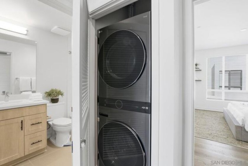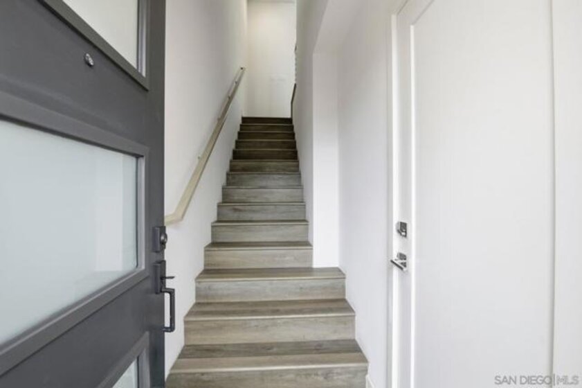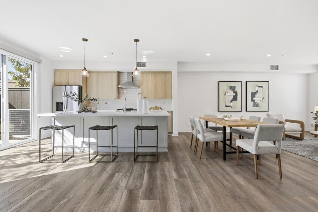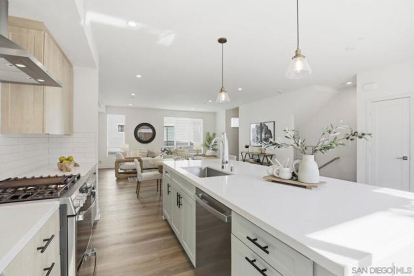Nestled in the highly coveted Point Loma Heights neighborhood and newly built in 2024, this stunning contemporary townhome delivers modern coastal living at its best. Enjoy two stories of light-filled space within walking distance to shopping and acclaimed San Diego restaurants, and just minutes to Ocean Beach, Sunset Cliffs, Barnes Tennis and Pickleball Center and the energy of Liberty Station. Highlights include an owned solar system, central A/C, and an oversized two-car attached garage with hobby space and ample storage. The open-concept kitchen, dining, and living areas feature an expansive island, pendant lighting, quartz countertops, tiled backsplash, top-tier GE stainless appliances, a gas range, recessed lighting, and beautifully finished cabinetry with soft-close drawers. Private, enclosed landscaped patio for easy indoor-outdoor living. Luxury vinyl plank flooring runs throughout. A convenient powder room sits on the main living level, while the third floor offers a spacious primary suite and bath retreat, two additional bedrooms, and an additional full bath. Thoughtful upgrades include premium Norman sunshade blinds, a tankless water heater, vinyl windows, and a metal entry awning, along with an owned SunPower solar system and more. Contemporary, stylish, and truly move-in ready, this home checks every box.