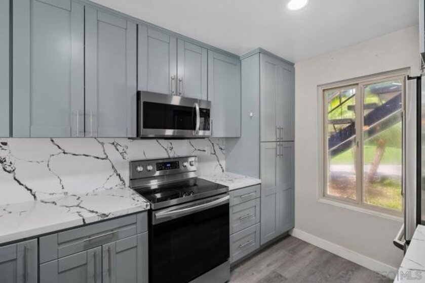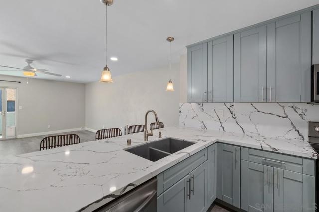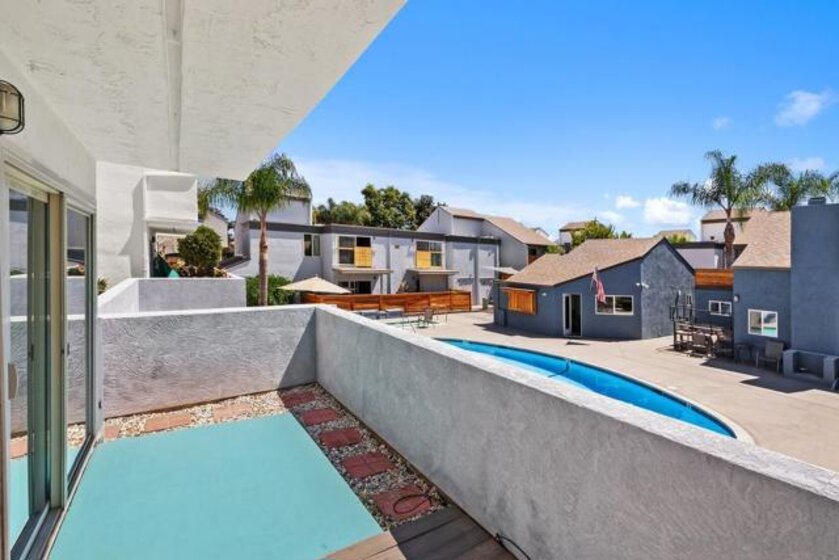 Discover this beautiful first-floor 3-bedroom, 2-bathroom condo in the gated Village Square community of Clairemont, featuring a spacious living room, a modern kitchen with high-end cabinetry, quartz countertops, stainless steel appliances, and upgraded lighting, along with stylish bathrooms, fresh paint, updated hardware, and ceiling fans. Enjoy a tranquil park-like setting with an oversized private patio offering a serene pool view, all within walking distance to shops, restaurants, and grocery stores, with easy freeway access. HOA dues include water and trash, making this turnkey home a low-maintenance retreat in one of San Diego’s most desirable neighborhoods.