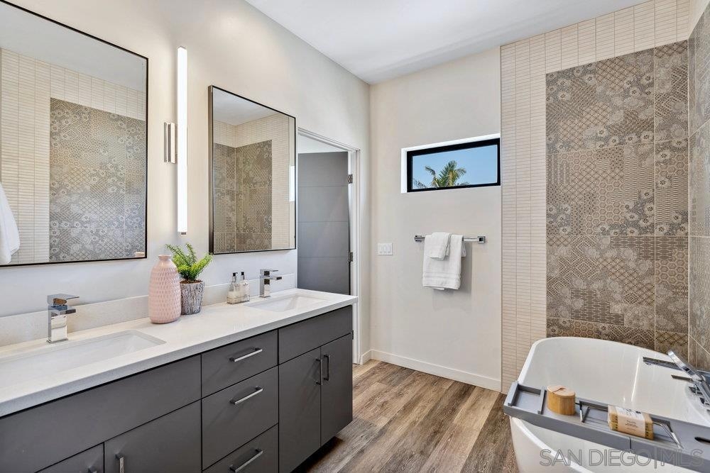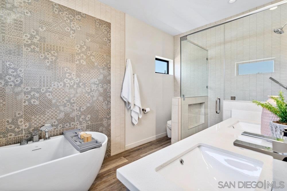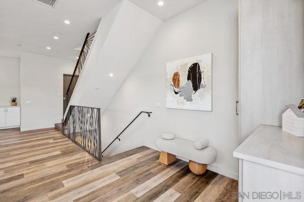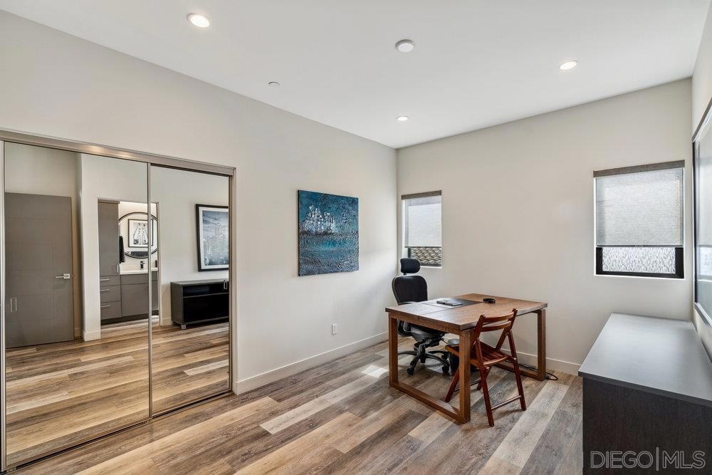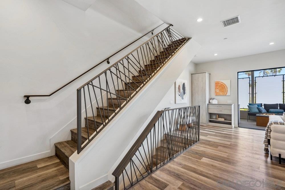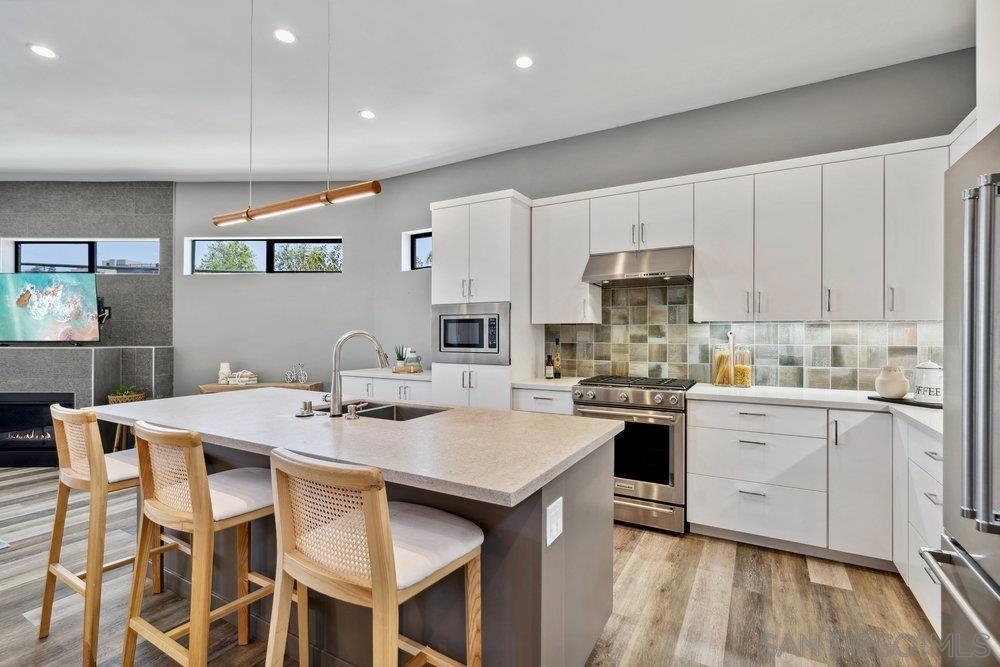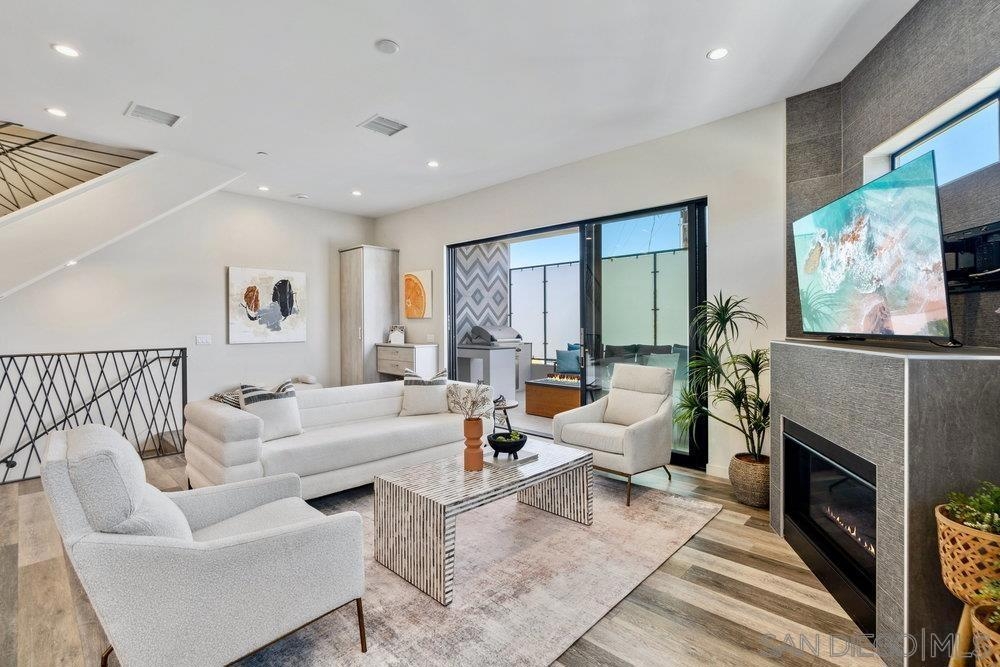 Discover modern elegance and urban convenience in this stunning end-unit townhome with owned SOLAR built in 2019 and LEED Silver certified for exceptional energy efficiency.Six detached homes offer inviting elements that have merged to create a seamless indoor outdoor experience. Msix is LEED cert, including individually installed 3KW SOLAR power systems! Each home features an office alcove, 2 car expansive custom-designed covered terrace on the first floor that offers the ultimate indoor-outdoor experience—featuring privacy screens, designer wall tile, built-in BBQ, dining island, fire pit, and an all-weather custom couch, all gas-plumbed and included! Exceptional Interior Features & Custom Upgrades include an expansive great room with a cooking island, bar service area, and upgraded auto-return drawer cabinets for seamless storage. Custom fireplace with tile mantel, adding warmth and ambiance. Extended luxury vinyl plank (LVP) flooring up the stairs and throughout the upper level. Primary suite oasis featuring a soaking tub, custom shower, and a spacious closet with a custom efficiency unit and built-in chest of drawers. Second terrace off the primary bedroom, perfect for relaxation. Second bedroom includes a custom efficiency closet system for optimized organization and a second-floor office alcove nook with a built-in chest of drawers laundry hampers for added functionality and a full size washer/dryer. Situated in a walkable Hillcrest neighborhood, this home is just steps from The Hub shopping center via the iconic Vermont St. Bridge. Don’t miss this rare opportunity! Premium Appliances Included: KitchenAid refrigerator & dishwasher LG stackable front-loading washer & gas dryer with steaming capability & convection oven with steam and proofing options for baking. Professionally mounted flatscreen TV (2020). Situated in a highly walkable Hillcrest neighborhood, this home is just steps from The Hub shopping center via the iconic Vermont St. Bridge, providing easy access to grocery stores, restaurants, and personal services. Additional conveniences include: Quick access to 163, 805 & 5 freeways A short drive to Von’s, Whole Foods & Lazy Acres Close to award-winning restaurants & the legendary University Ave. scene This impeccably designed, move-in-ready home offers the best of urban living with luxurious upgrades and energy-efficient features. Schedule your private tour today!