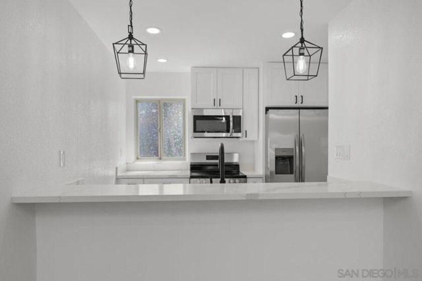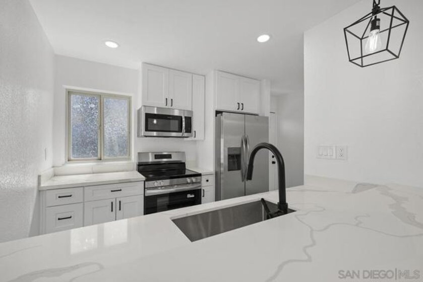 Turn-key in central Linda Vista! This fully remodeled 2BR/1BA condo pairs fresh, modern finishes with everyday convenience. sleek bar - perfect for casual dining, all-new appliances, quartz counters, and sleek cabinetry, opening to a spacious living area and private balcony for morning coffee or fresh air. Thoughtful upgrades continue with new flooring, designer lighting, updated bath, and in-unit laundry hookups (community laundry also available). Tucked inside a well-kept community with a sparkling pool, this home offers easy access to shopping, dining, parks, and major freeways. A clean, contemporary look, and a super convenient location—move right in and enjoy! Turn-key in central Linda Vista! This fully remodeled 2BR/1BA condo pairs fresh, modern finishes with everyday convenience. The bright kitchen features a large island, all-new appliances, quartz counters, and sleek cabinetry, opening to a spacious living area and private balcony for morning coffee or fresh air. Thoughtful upgrades continue with new flooring, designer lighting, updated bath, and in-unit laundry hookups (community laundry also available). Tucked inside a well-kept community with a sparkling