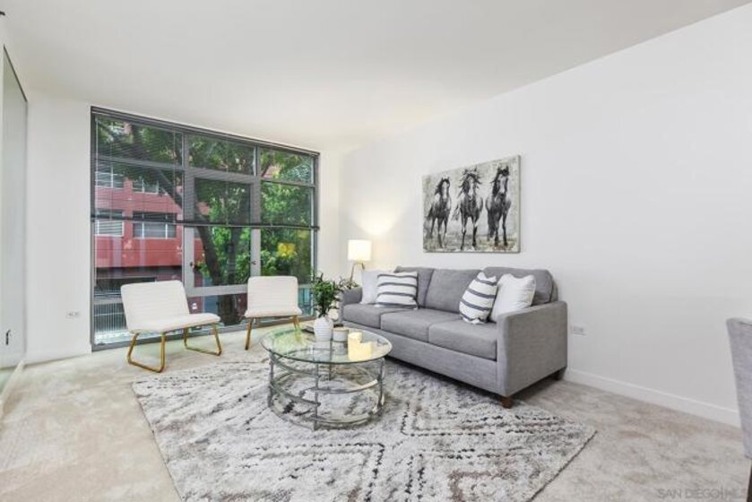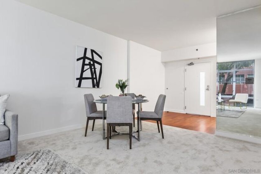 Welcome to the highly desirable Aqua Vista, your urban-meets-coastal escape in the heart of San Diego! This charming 766-square-foot condo, built in 2004, is tucked within the highly sought-after Downtown community, offering a perfect balance of tranquility, comfort, and vibrant city living. Nestled next to Little Italy, you’ll be just steps away from buzzing cafés, iconic restaurants, artisan markets, and peaceful waterfront strolls. Inside, this inviting one-bedroom, one-bath retreat features an open layout that seamlessly connects the living, dining, and kitchen areas—excellent for entertaining or unwinding after a day of exploring the city. The charming galley-style kitchen offers a refrigerator, microwave, and dishwasher, providing everything you need for easy, efficient daily living. Residents enjoy an impressive array of community amenities, including a sparkling rooftop pool & spa, a fitness center, two welcoming lobbies, and outdoor barbecue areas perfect for gatherings. Additional conveniences—such as air conditioning and valet garage parking for one car—enhance your everyday comfort. In-unit laundry makes chores a breeze, giving you more time to enjoy Little Italy’s lively energy or take in San Diego’s stunning shoreline. Your ideal San Diego home awaits—don’t miss this incredible opportunity!