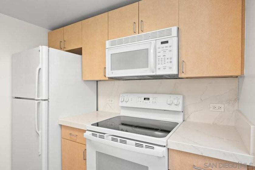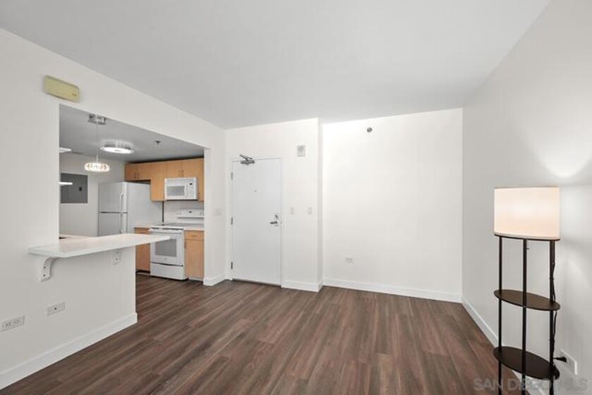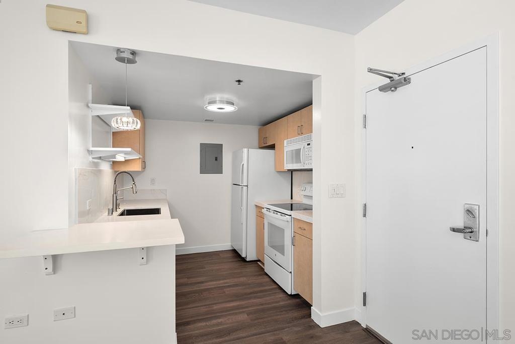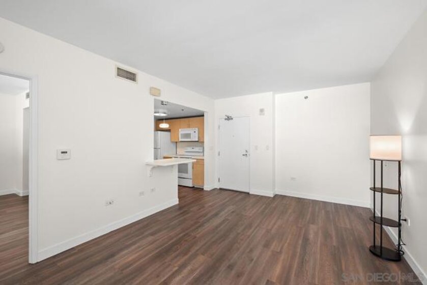 Feast your eyes on this immaculate residence in vibrant Little Italy, one of San Diego's most spirited neighborhoods. Recently upgraded, this contemporary condo boasts luxury viny plank flooring, neutral color palette, and a private balcony to catch the breezes and city view! You will surely enjoy cooking in the pristine kitchen with sleek quartz countertops, a custom extended bar well-suited for entertaining, a Mayeser single-basin undermount sink, and a Kohler Ringby faucet. The spacious bedroom offers ample closet space, with the adjoining bathroom featuring a granite vanity with tub-shower combination. Perfect for a first-time buyer or investor looking for a sharp, well-appointed condo in popular Little Italy. Downtown San Diego's Little Italy is a vibrant culinary and cultural hotspot, beloved for its rich history and modern flairs. Classic restaurants like Mona Lisa and Civico 1845, alongside new favorites Ironside, Juniper & Ivy, and Craft & Commerce, make it a go-to for local foodies. The neighborhood is filled with cafes, bakeries, boutiques, bars, and wine shops, perfect for an evening wander. The Little Italy Association also keeps the calendar full with community events such as art walks, car shows, the yearly Little Italy Festa, and a vibrant Farmers Market on Wednesdays and Saturdays. Don’t forget the NoLi Art & Design District, a vibrant hub that includes a collection of retail outlets, designer boutiques, and art galleries, all boasting unique home items and rare discoveries to help you curate the perfect ambiance for your new residence. Acqua Vista features complimentary valet parking for residents, 24/7 security and lobby attendants, a fitness center, and an 8th floor pool and spa deck, barbecues and lounge area. Residents can also take advantage of the community’s electric vehicle charging stations. *Have a 2nd vehicle? The HOA leases additional parking spaces too!*