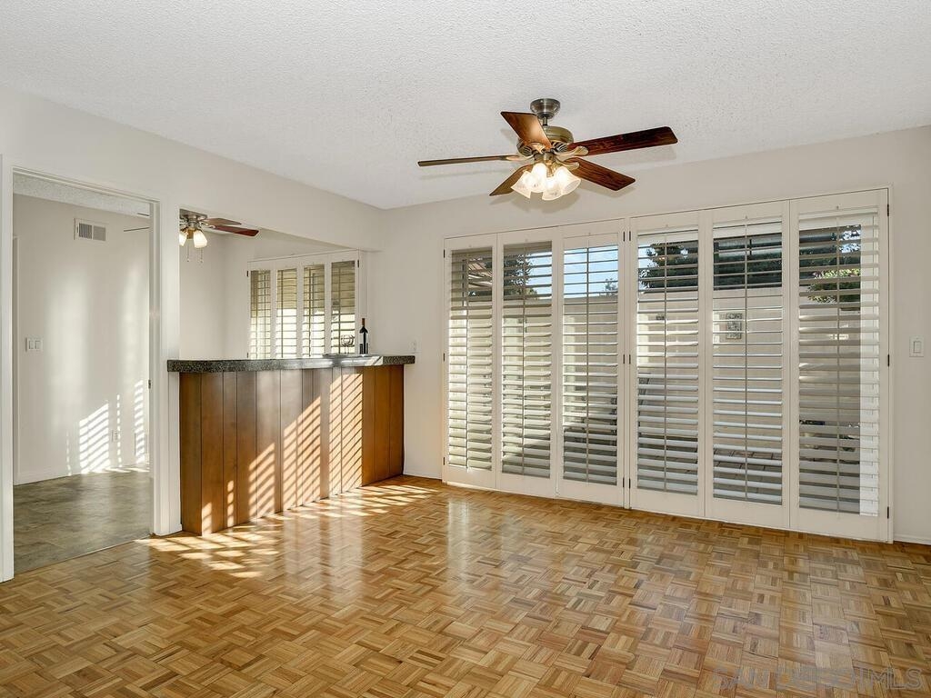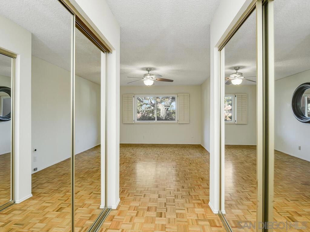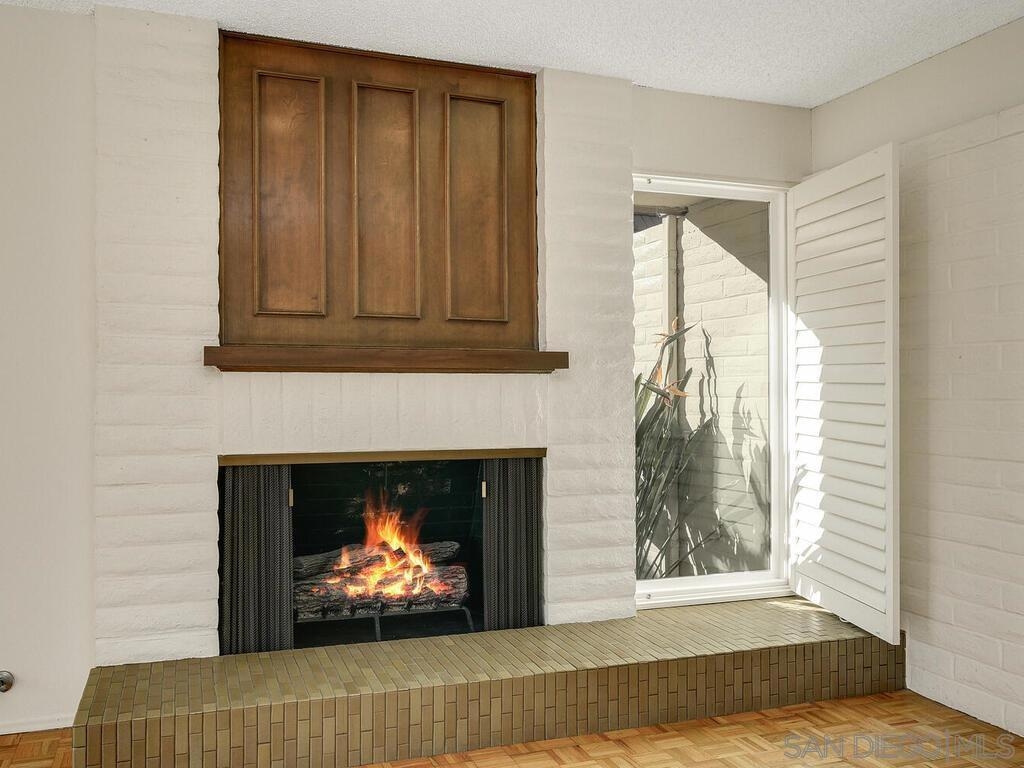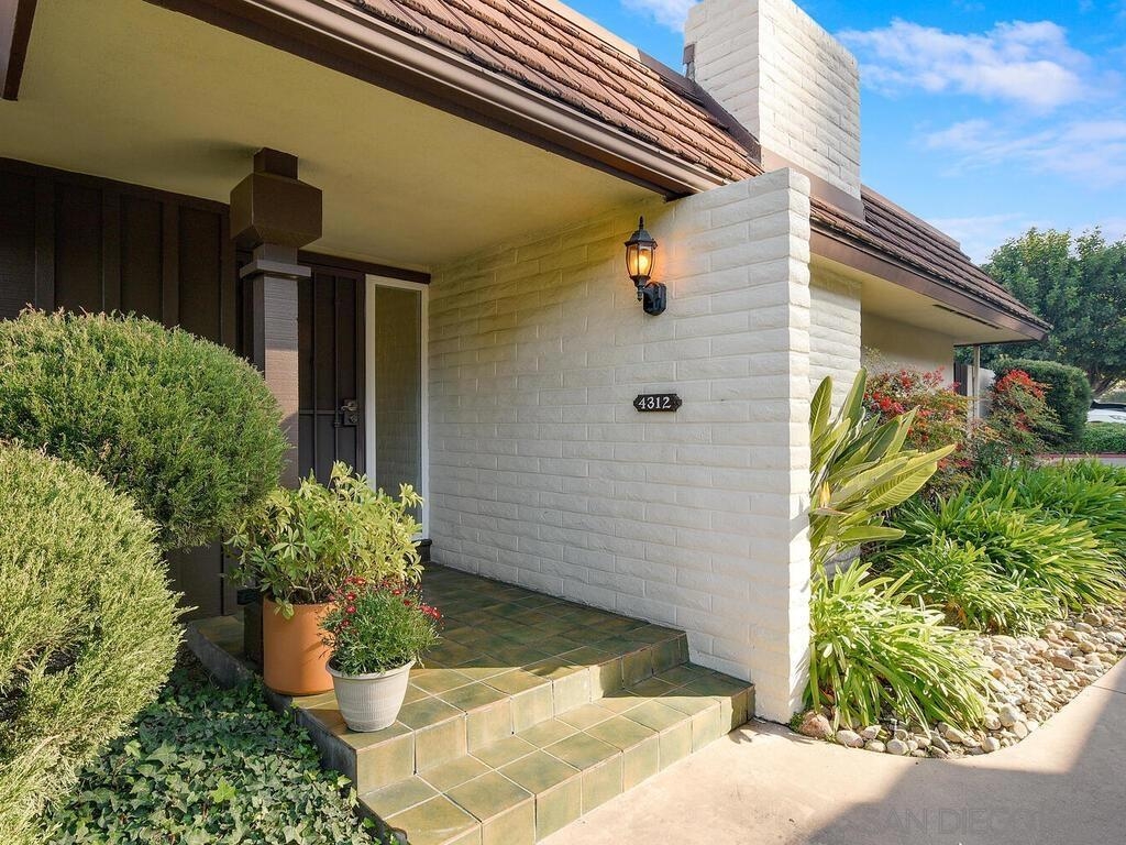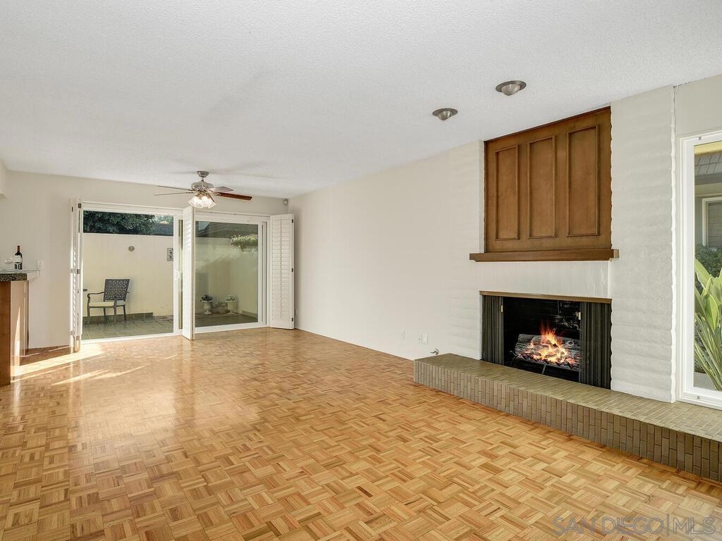 Beautifully maintained & updated single story end unit w/real Mid Century Modern style. Newer dual pane windows and sliders, kitchen w/granite counter tops & stainless appliances, newer AC, furnace, water heater, bathroom fixtures. Original wood paneling, regrouted tiles & cabinets, gleaming oak parquet flooring & custom wood shutters. Light filled w/windows on 3 sides, it feels like a house. Great indoor/outdoor flow from living room to the huge fully enclosed patio. Direct entry garage with no steps, extra parking is available w/approved permit. Excellent, peaceful location with gorgeous landscaping around the unit. Collwood Park is an award winning community with 3 pools(1 heated all year), a large clubhouse, 2 spas, and almost 26 acres of beautiful grounds and extensive walkways. The parklike atmosphere and make it ideal for strolling, exercise and pets. This is also a wonderful central location just minutes to downtown, the beaches, SDSU and great shopping.