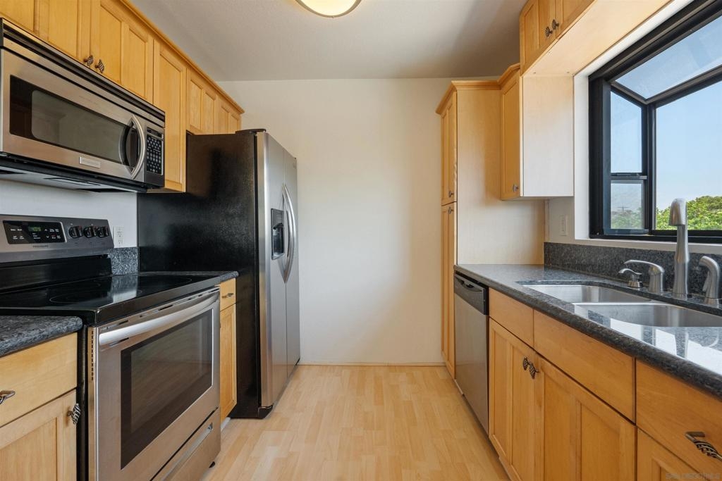 Nestled in the vibrant heart of San Diego's University Heights neighborhood, this stylish 2-bedroom, 2-bathroom condo offers a perfect blend of comfort and urban convenience. This prime location offers easy access to shops, dining, famers market, and the lively cultural scene of Hillcrest. The kitchen features granite countertops, stainless steel appliances and light wood cabinets. The primary bedroom is spacious with generous closet space and an en-suite bathroom for added privacy and convenience. Additional highlights include the wood burning fireplace, vaulted ceiling, in-unit laundry, assigned 2 car tandem garage parking, and a private balcony. With a Walk Score® of 92, daily errands and dining options are just steps away, while nearby Balboa Park offers acres of green space and cultural attractions.