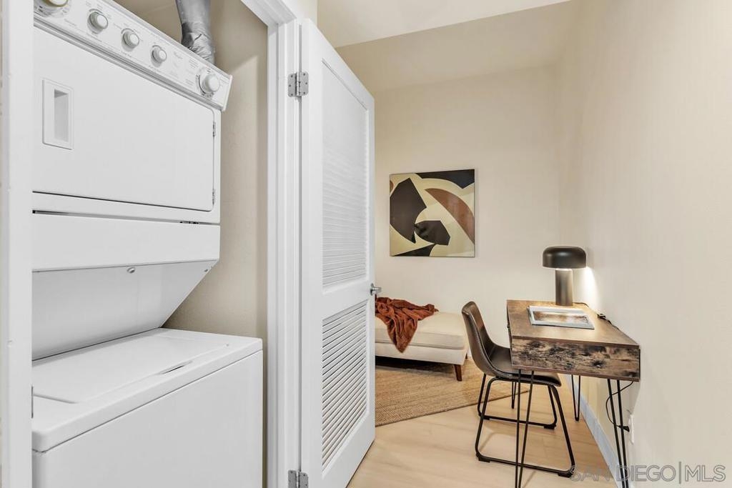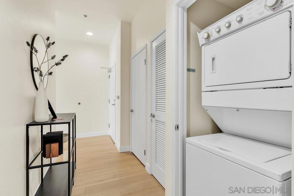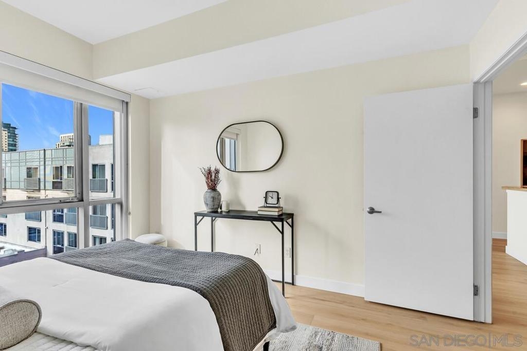 Step into this stunning, top floor corner residence in the heart of San Diego’s iconic Gaslamp Quarter, where modern style meets vibrant city energy. This oversized 1-bedroom + den home is drenched in natural light thanks to dramatic floor to ceiling windows and a private slider overlooking the city. Freshly updated with white oak luxury vinyl plank flooring, brand new stainless kitchen appliances, upgraded cabinet hardware, and a crisp new paint palette! This condo feels clean, contemporary, and undeniably chic. A rare luxury for downtown living: two secured parking spaces convey with the home! Gaslamp City Square delivers true resort-style amenities, including a pool, spa, fitness center, and BBQ courtyard, all perched on the elevated 3rd-floor deck. Step outside your front door and into the best of downtown with boutiques, cafés, nightlife, and restaurants just moments away. FHA & VA approved. Urban living at its finest! Step into this stunning, top floor corner residence in the heart of San Diego’s iconic Gaslamp Quarter, where modern style meets vibrant city energy. This oversized 1-bedroom + den home is drenched in natural light thanks to dramatic floor to ceiling windows and a private slider overlooking the city. Freshly updated with white oak luxury vinyl plank flooring, brand new stainless kitchen appliances, upgraded cabinet hardware, and a crisp new paint palette! This condo feels clean, contemporary, and undeniably chic. A rare luxury for downtown living: two secured parking spaces convey with the home! Gaslamp City Square delivers true resort-style amenities, including a pool, spa, fitness center, and BBQ courtyard, all perched on the elevated 3rd-floor deck. Step outside your front door and into the best of downtown with boutiques, cafés, nightlife, and restaurants just moments away. FHA & VA approved. Urban living at its finest!