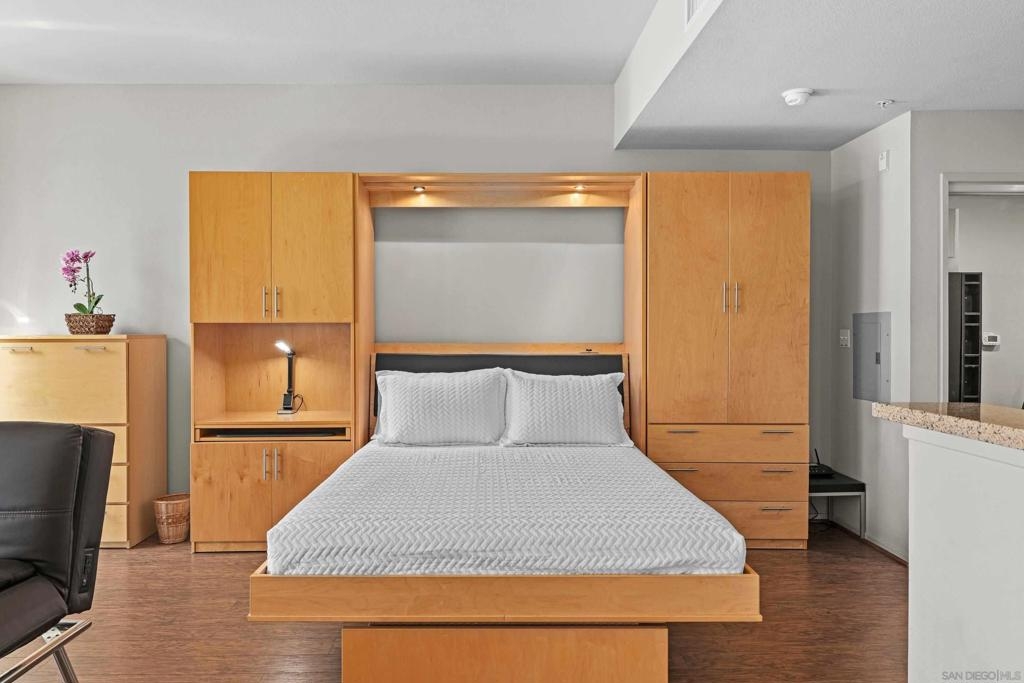 Tucked into the vibrant heart of the Gaslamp Quarter, this spacious and thoughtfully designed studio in Gaslamp City Square offers a rare blend of urban energy and serene retreat living. Overlooking the beautifully landscaped interior courtyard, this residence enjoys a peaceful, quiet setting—far removed from street noise—while still placing you steps from downtown’s best dining, nightlife, and entertainment venues including Petco Park and the Rady Shell amphitheater. The south-facing orientation fills the home with abundant natural light throughout the day, creating a warm and inviting atmosphere. The courtyard itself is a true hidden oasis, featuring a resort-style swimming pool, relaxing hot tub, BBQ areas, and ample lounge seating with umbrellas—an ideal setting to unwind or entertain in the middle of the city. Offered fully furnished, this turn-key residence includes stylish furniture, kitchenware, and everything needed for immediate enjoyment or rental readiness. Additional highlights include in-unit laundry and one assigned underground parking space for ultimate convenience. Residents benefit from a well-managed building with onsite property management, roaming nighttime security, and guest parking available for a nominal fee—enhancing both comfort and peace of mind. Whether you’re seeking a primary residence, second home, or investment opportunity, this light-filled studio offers an exceptional lifestyle in one of downtown San Diego’s most iconic neighborhoods. The south-facing orientation fills the home with abundant natural light throughout the day, creating a warm and inviting atmosphere. The courtyard itself is a true hidden oasis, featuring a resort-style swimming pool, relaxing hot tub, BBQ areas, and ample lounge seating with umbrellas—an ideal setting to unwind or entertain in the middle of the city. Offered fully furnished, this turn-key residence includes stylish furniture, kitchenware, and everything needed for immediate enjoyment or rental readiness. Additional highlights include in-unit laundry and one assigned underground parking space for ultimate convenience. Residents benefit from a well-managed building with onsite property management, roaming nighttime security, and guest parking available for a nominal fee—enhancing both comfort and peace of mind. Whether you’re seeking a primary residence, second home, or investment opportunity, this light-filled studio offers an exceptional lifestyle in one of downtown San Diego’s most iconic neighborhoods.
