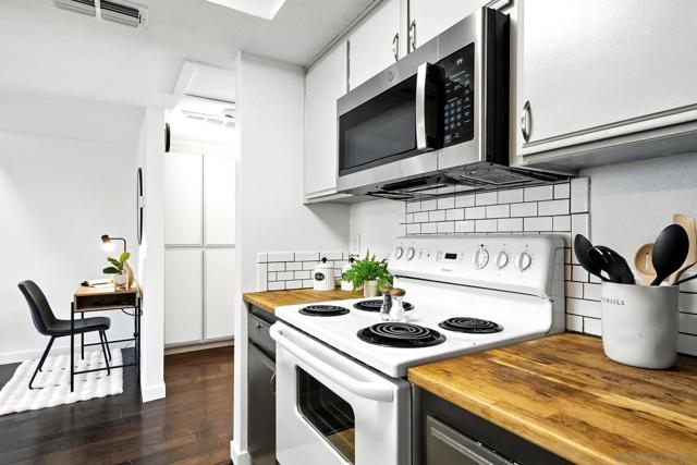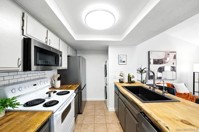 Welcome to your private retreat in one of San Diego’s most vibrant and walkable neighborhoods, Normal Heights! This beautiful top-floor 1-bed + loft, 1-bath condo with A/C, private garage, and additional parking driveway offers rare space, style, and flexibility in a peaceful pocket just steps from the energy of Adams Avenue. Soaring vaulted ceilings and an open, light-filled layout create an airy, welcoming vibe, while the versatile loft provides the perfect space for a home office, creative studio, or cozy lounge. Enjoy modern comforts like central heat and A/C, in-unit laundry, and a spacious walk-in closet. Step outside to your own private patio, ideal for morning coffee or relaxing in the San Diego sunshine. An assigned 1-car garage plus an additional off-street parking space in your assigned driveway offer exceptional convenience, a true rarity in the area. Nestled on a quiet, tree-lined street within walking distance of local cafés, boutiques, and eateries, this condo delivers the best of both worlds: tranquil living with an unbeatable urban lifestyle!