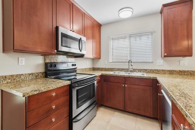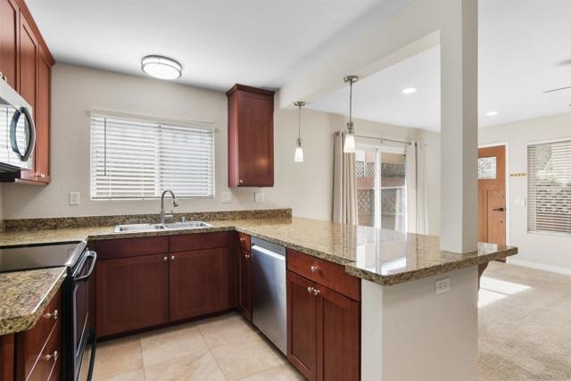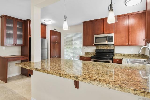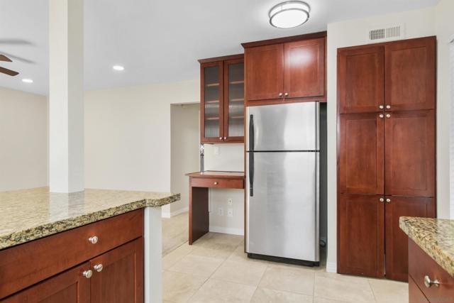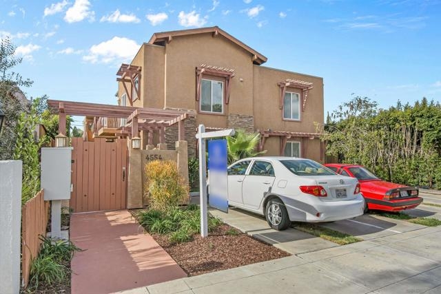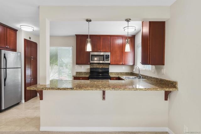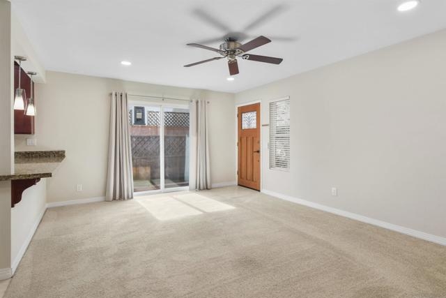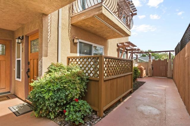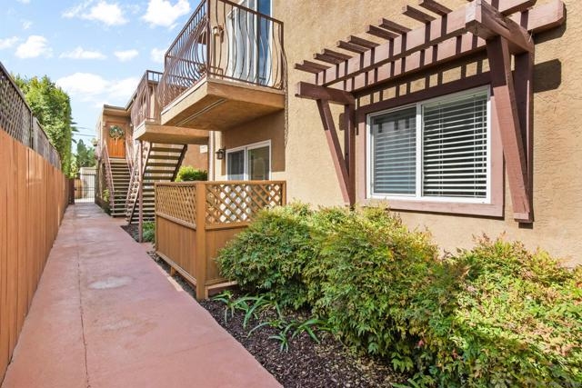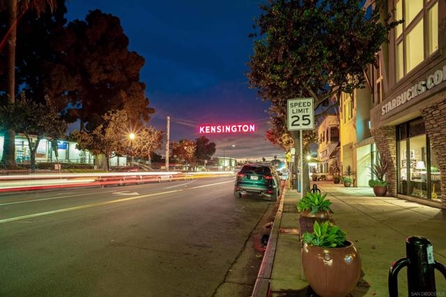 This 2 Bedroom END UNIT has windows on 3 sides and highlights a welcoming and open floorplan in the Village of Kensington! Looking for both a peaceful, neighborhood setting AND a walkable, Metro village lifestyle? This move-in ready, NO STEPS, ground floor, 2 bedroom condo is located less than 2 blocks from the HEART of the Kensington village and the many restaurants and shops along Adams Avenue! Spacious eat-in kitchen with counter height peninsula with bar seating for 3 to 4 people and in-unit stack laundry. With 2 sets of sliding doors & 3 ceiling fans afford wonderful cross breezes & fresh air in this spacious and open floor plan. Dual pane windows and sliding doors to your 2 private patios - one off the living room and the other off one of the bedrooms. With a surprising amount of cabinetry, built-ins and plentiful closet space, it truly feels like a home. As you are welcomed with handsome building curb appeal, gated wood pergola entry, curved wrought iron railings and a Mission style solid wood front door, this is a place you'll be proud to call your own! All the benefits of a Metro village neighborhood location in a more peaceful residential setting in Kensington! Walk to your favorite restaurants, shops, library/park and even the local Copley-Price YMCA!